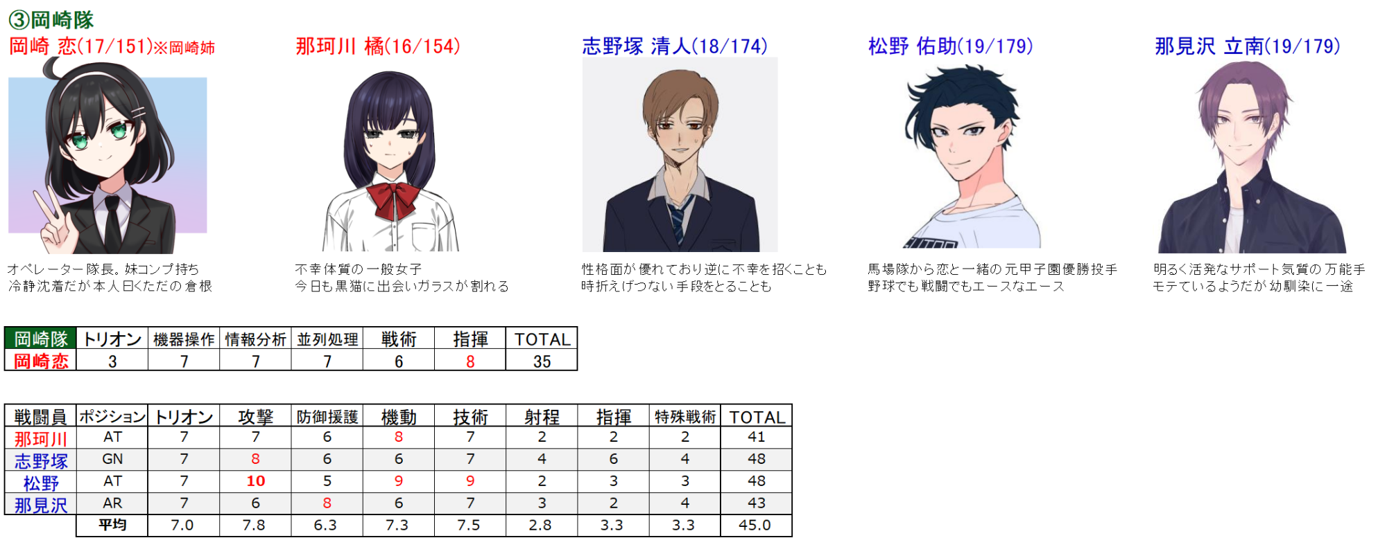 ・特に指揮に関しては場合によっては部隊決定ダイスに大きな影響を与えるので特に戦闘員の4~5、オペの7~8のラインは念入りにお願いします