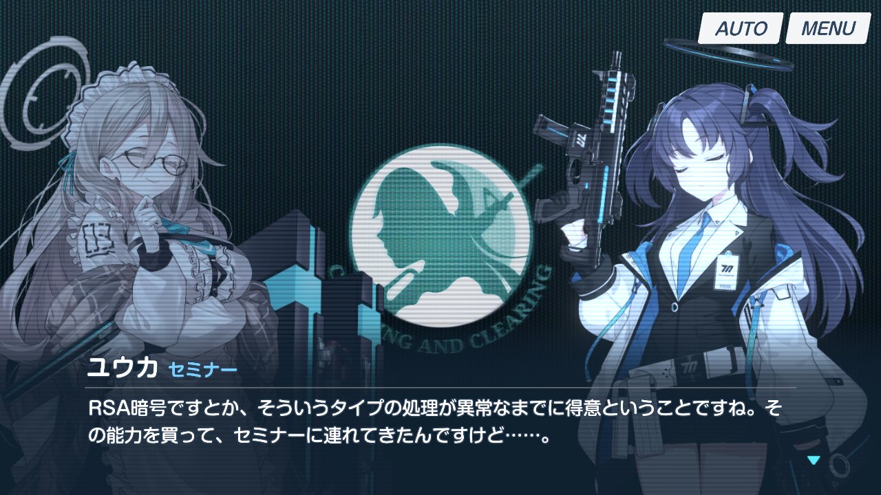 ただ、RSAが感覚で解けたとしても「暗号化された通信を傍受する」には相応の準備が必要だから、電子機器が無いと数学的な暗号を解くのが異常に得意なだけの一般キヴォトス人になるはず