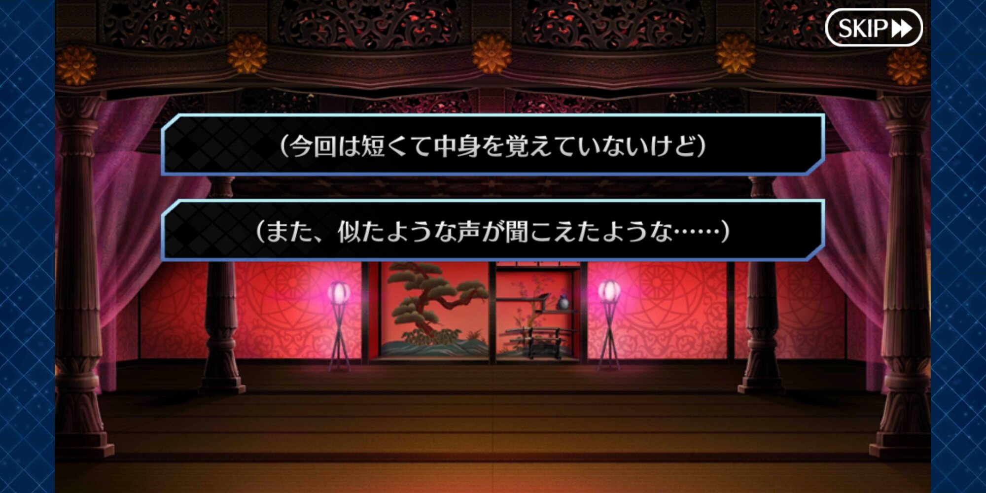 廊下、部屋の名前や様子を見ながらここはこのサーヴァントだったのかな?とか想像する割と趣味の悪い遊び楽しい