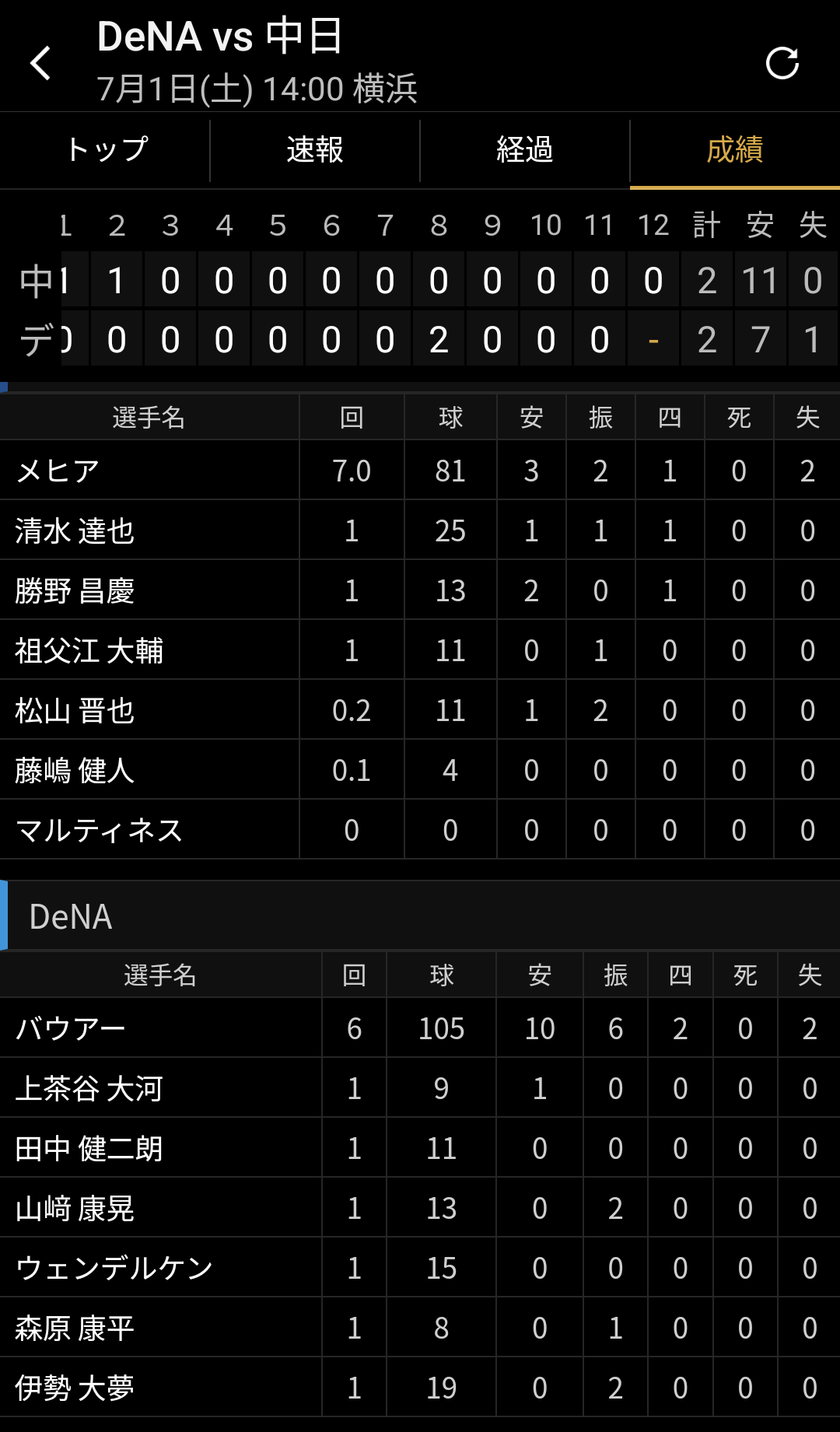 種市様も初回以外は0点と踏ん張りましたわ!!