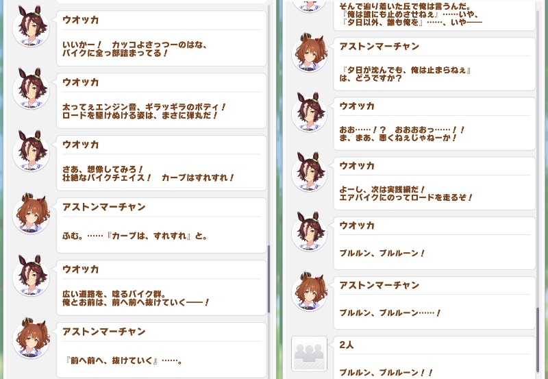 マーチャンがウオッカのカッコいいとかバイクとかに割と興味持ってくれてるからそれで結構仲良いイメージ