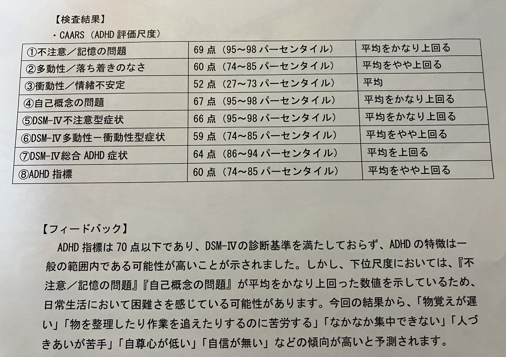 DSM-Vの診断基準は満たす症状の数やその持続期間とも聞くし、診る所や取り組む検査によって結果が違うことはまあ有りうるのではなかろうか