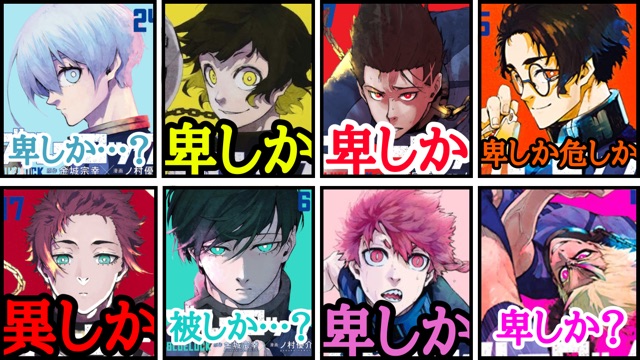 蜂楽、黒名、馬狼、凛、二子、雪宮、氷織、カイザー、國神、千切、ノア