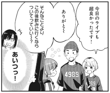 ギター抜けてもバンド解散じゃなくて廣井と一緒に新ギター探すあたり志麻さんも酒が入った廣井のパフォーマンスは認めてたんだろうな。そして酒を抜くとシックー☆ハックー☆になるという地獄を経験してるからライブ前に飲むなとは言えなくなってしまったと…
