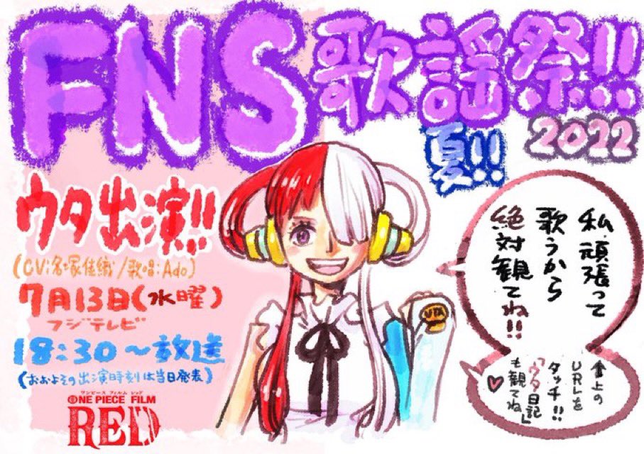<a href="https://twitter.com/hashtag/Ado" target="_blank">#Ado</a> — 『ONE PIECE FILM RED』【公式】 (OP_FILMRED) 2022年07月13日 - 13二次元好きの匿名さん23/07/12(水) 19:06:11