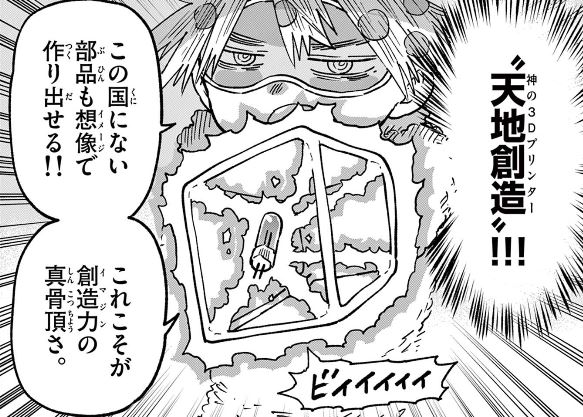 一度見ただけで構造分かるノアの頭脳に何でも作れる3Dプリンターの能力はチートすぎんか…?大きさとか作れる量に制限あるんかな