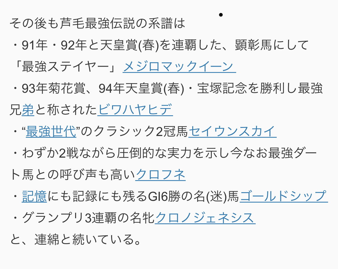 (それこそタマモクロスからビワハヤヒデまでの強い葦毛の系譜とか)