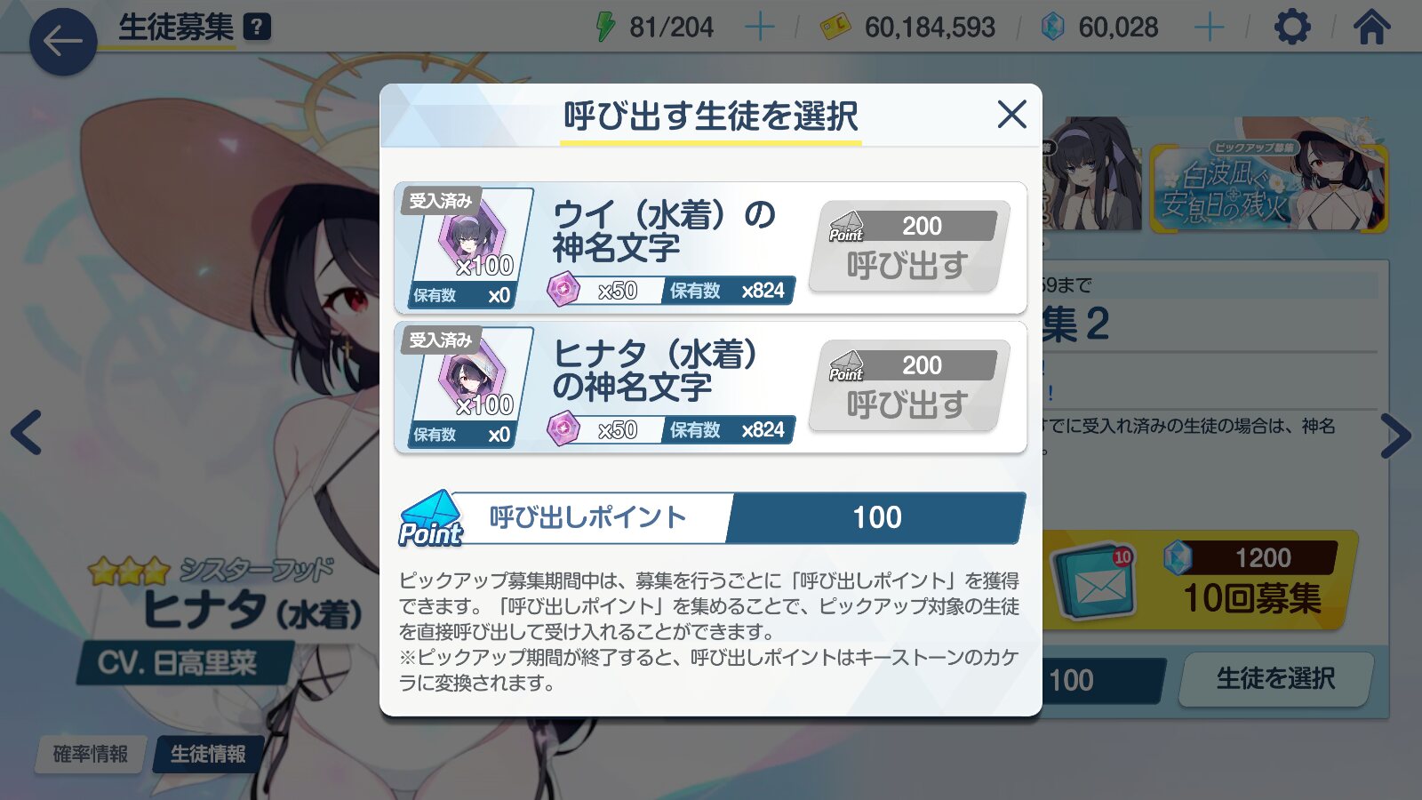 確かに通常募集の方が未所持が来る確率は上がるけど未所持はハナコガチャで狙うのがいいんじゃねえかと思ってんだ