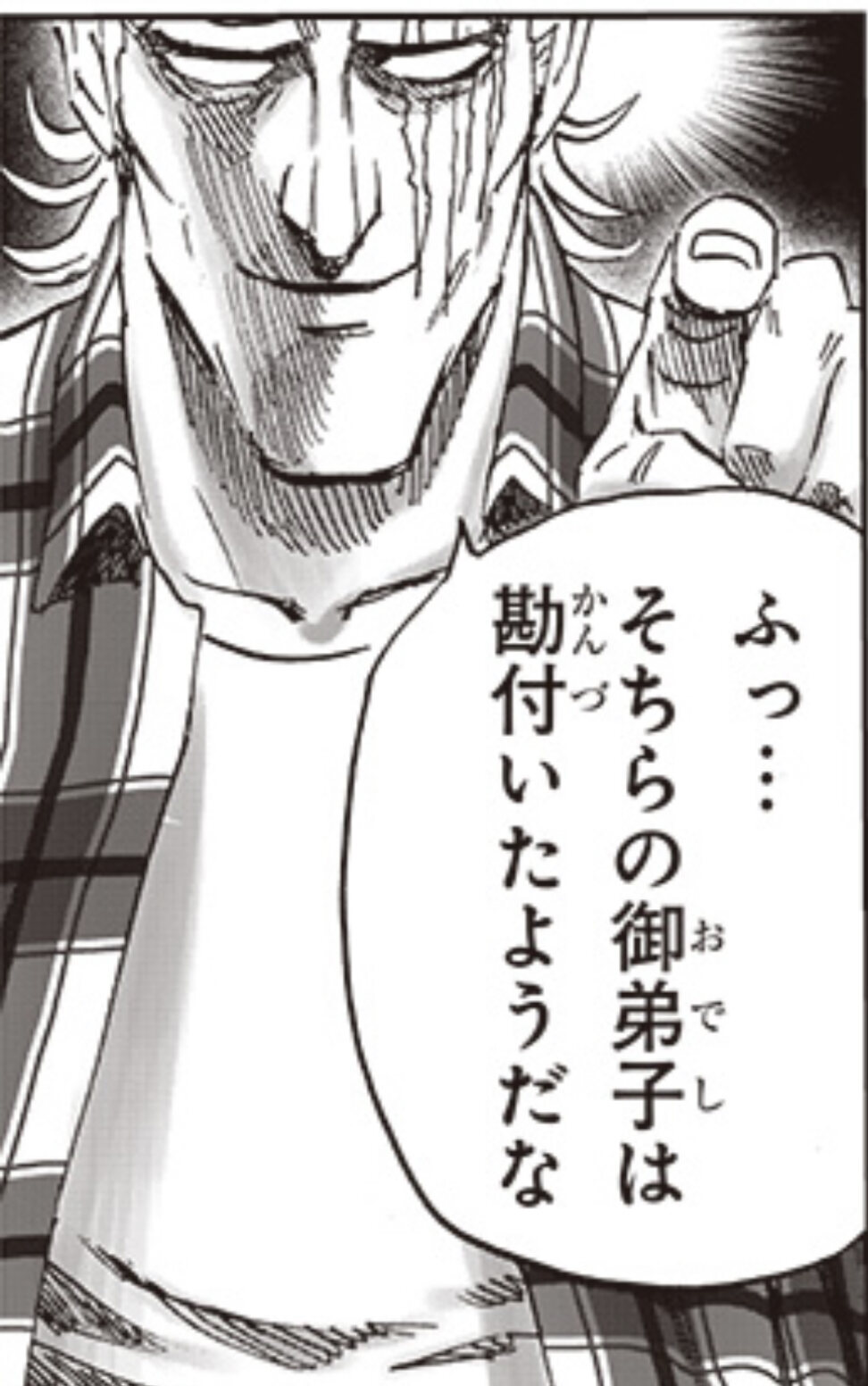 アトミック侍なら最新話でのキングの剣撃を見て、もし実際にキングと戦っていたら自分が認識できない速さで殺されてたかもしれないと思い至ってるだろうな