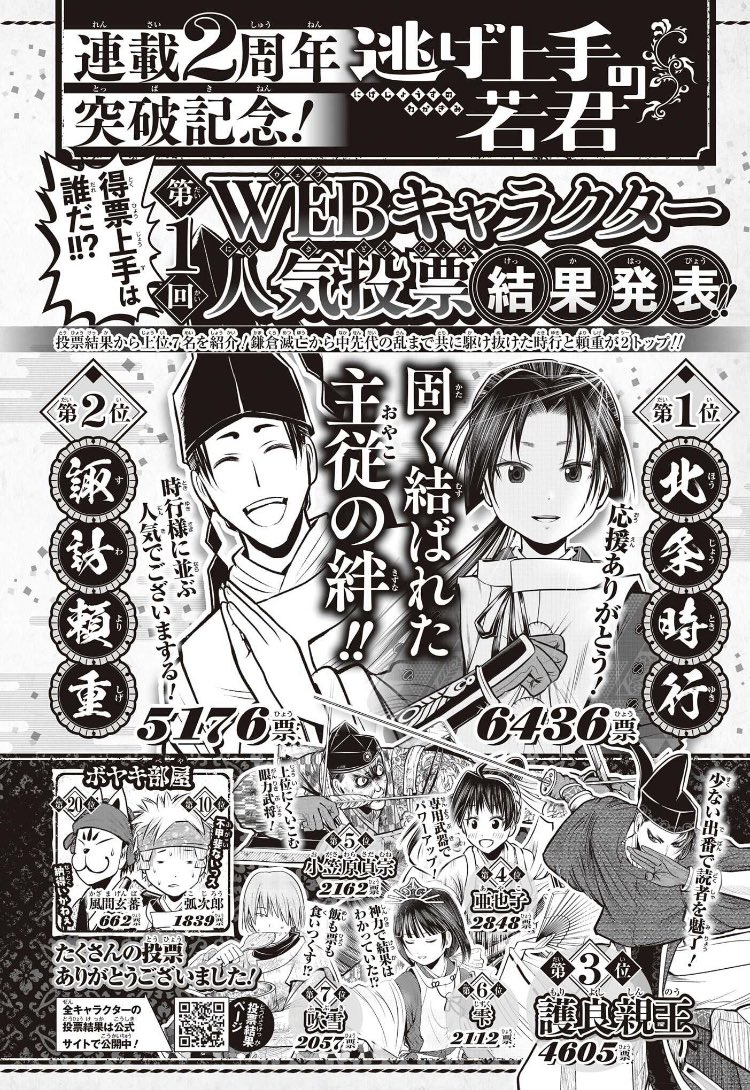 歴史おじさんだけど逃げ若のモロちゃんが好きなので順位が高くて嬉しいよ