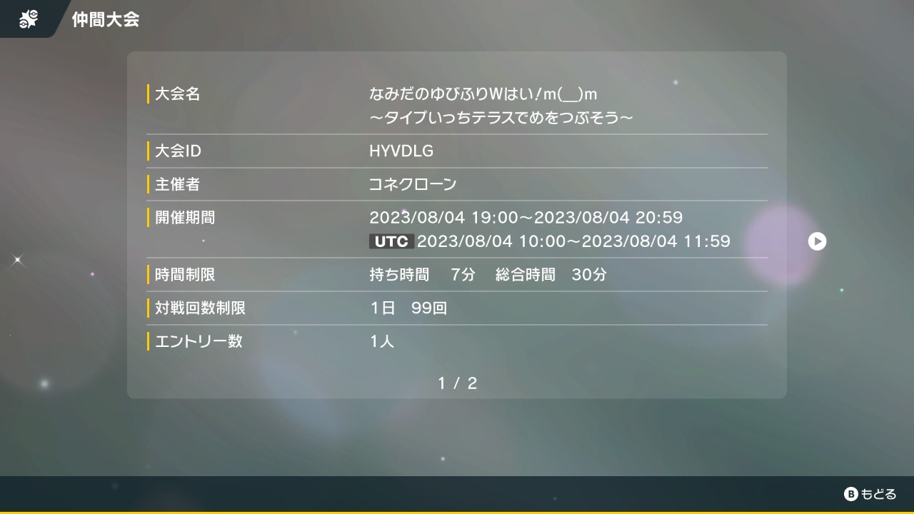- 1開催主23/07/31(月) 10:25:42前スレ→【告知】タイプ一致テラス指をふる大会W開催予告スレ|あにまん掲示板最強の指をふるポケモンを考案したので開催!バトル形式:ダブルバトル 手持ち2体までノーマルルールとなってるけど同じポケモン、同じ道具は禁止でお願いします開催日時:7月30日午後10時から12:00まで…bbs.animanch.com