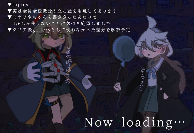 ・ダイスによってルートが分岐します。ハッピーエンドが確定しているわけではありません。「キャラの死亡」「暴力的・猟奇的・性的な描写」「唐突なカップリング展開」が入る可能性があります。