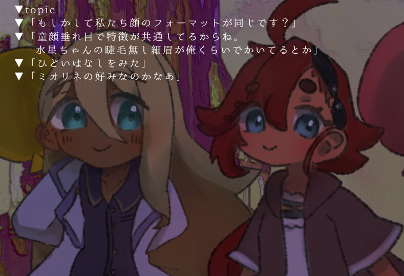 ミオリネがぱちぱちと目を瞬かせる。それからふっとため息をついて、エランのあたまをぐしゃぐしゃ撫でた。微笑みかけて、こちらを見つめてくる。