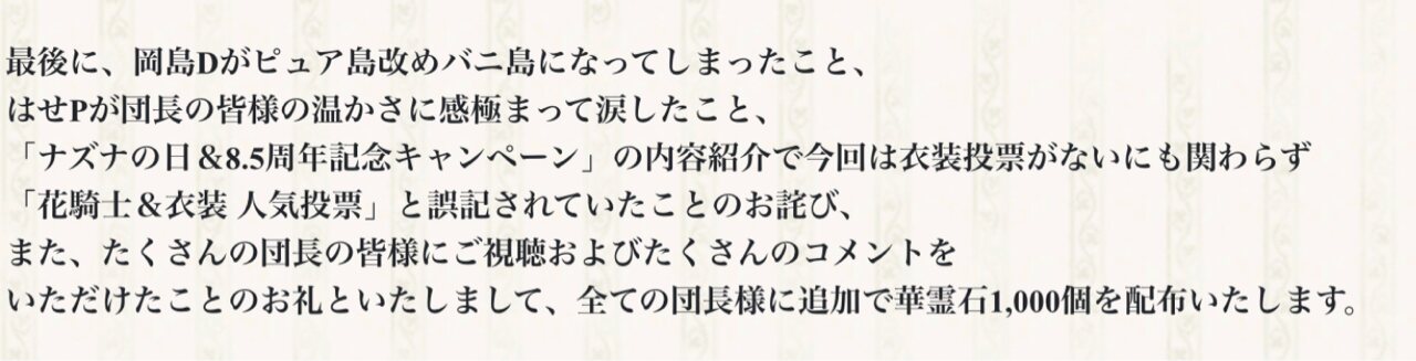 …いや、真面目な話「ゲームバランスやシステムの説明が不適切だったから」って理由でここまでのお詫びは流石に心配になる、勘違いするユーザー出てこないかな