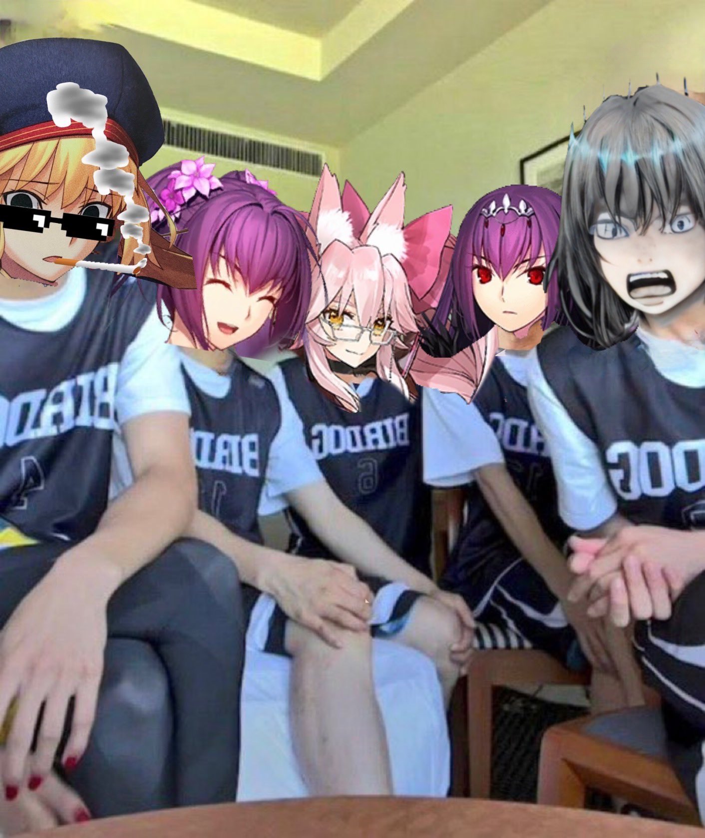 スレ画5人組の絆ケチりたいからオデコ常夏の休暇で道満+頼光をフレンドオベロンと一緒にサポさせる、それで許してくれ孔明