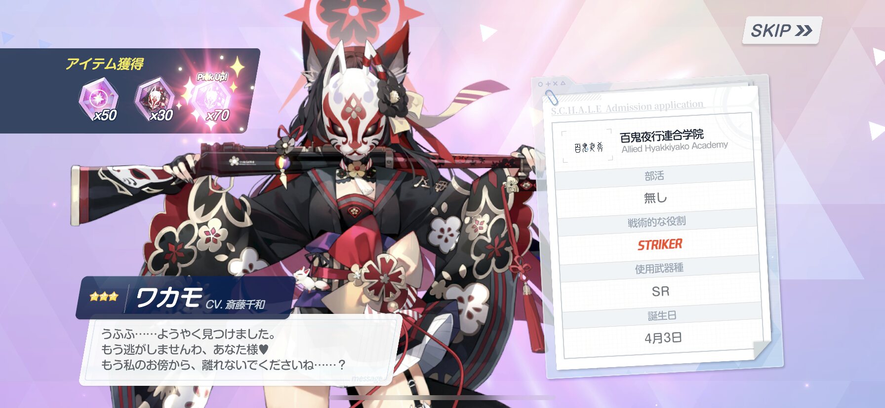 ワカモガチャだと桃色になるのか、やっぱりワカモに好かれてる‥‥
