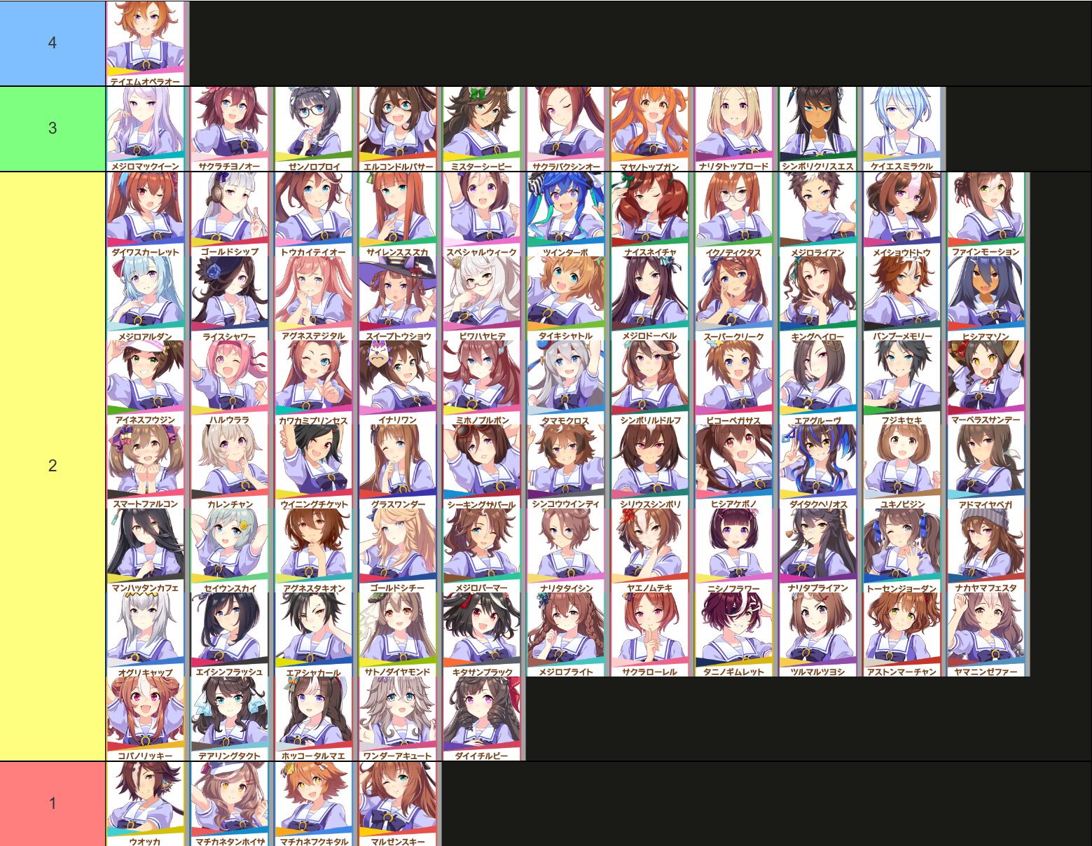 ・載っていないウマ娘を含めて全員(公式のキャラクター一覧にいるウマ娘)を分類できる?
