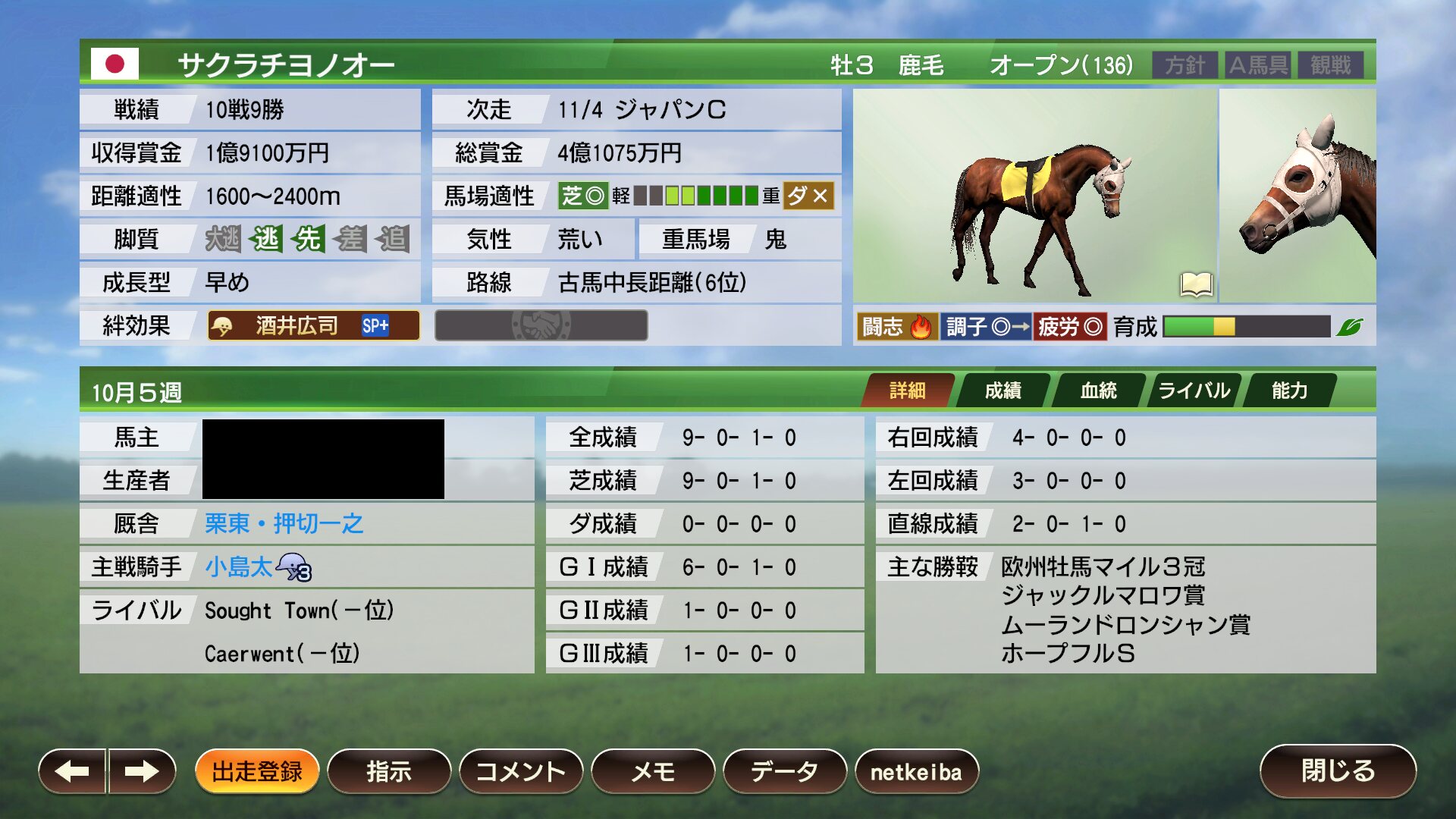 それでも時間をかければSPECIALでも無敗で20戦くらいする欧州三冠牝馬を作れるようになるのがやり込みゲーの面白さだもん - 137二次元好きの匿名さん21/12/18(土) 21:36:57