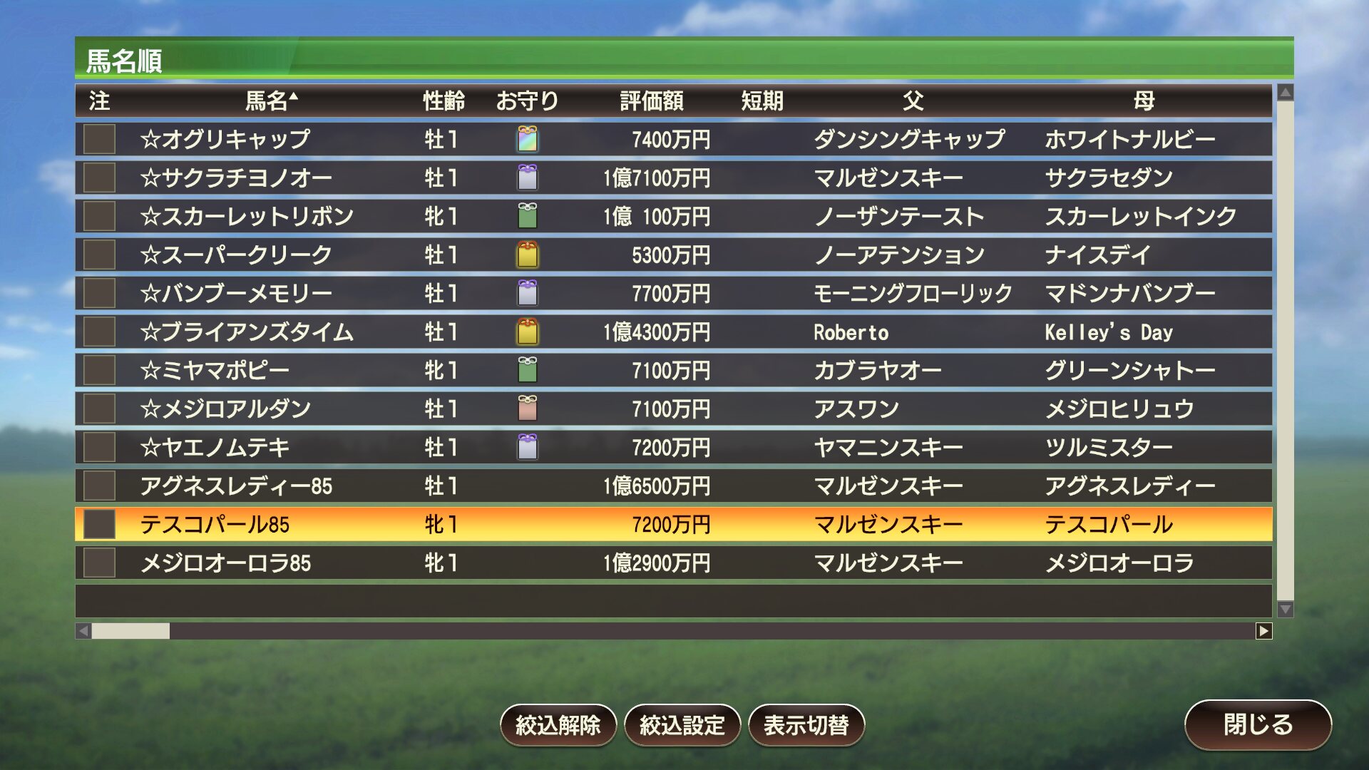 ウイポの悲しいところは血統支配率が高い血統に属してると種牡馬入りできないことだもん