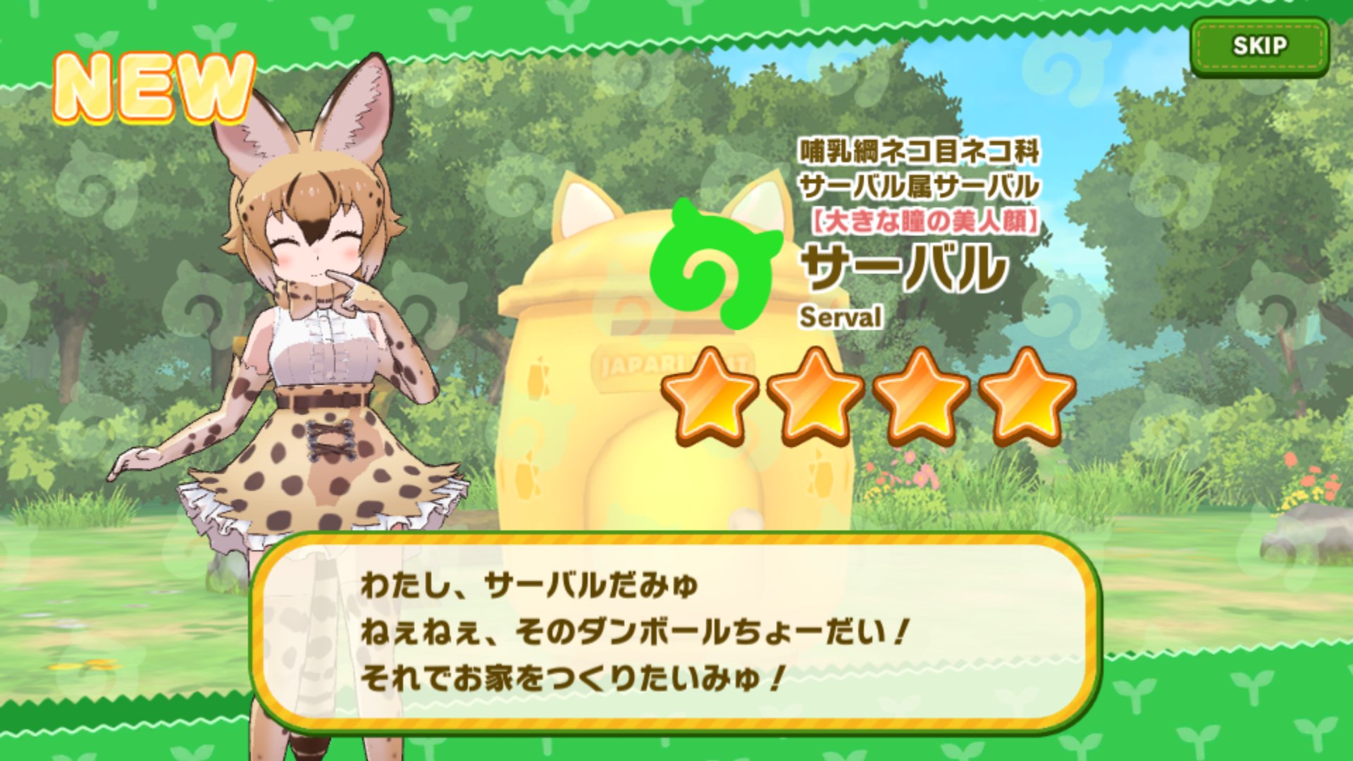 ジャクソンカメレオンとブラックサーバル実装でけもフレ3登場済みで未実装はいなくなったかね