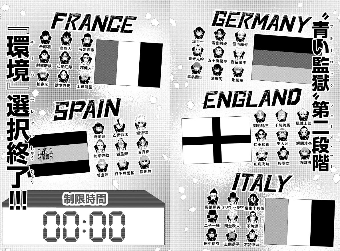 ドイツ…1.潔 2.雪宮 3.雷市 4.我牙丸 5.五十嵐 6.音留 7.黒名 8.清羅 9.氷織