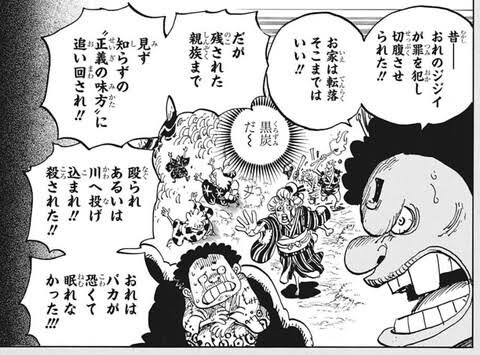 ドフラミンゴはファミリーや家族への愛情あるのは見え隠れしてるけどオロチは同じ黒炭に対する愛情とか同族意識とかないところ
