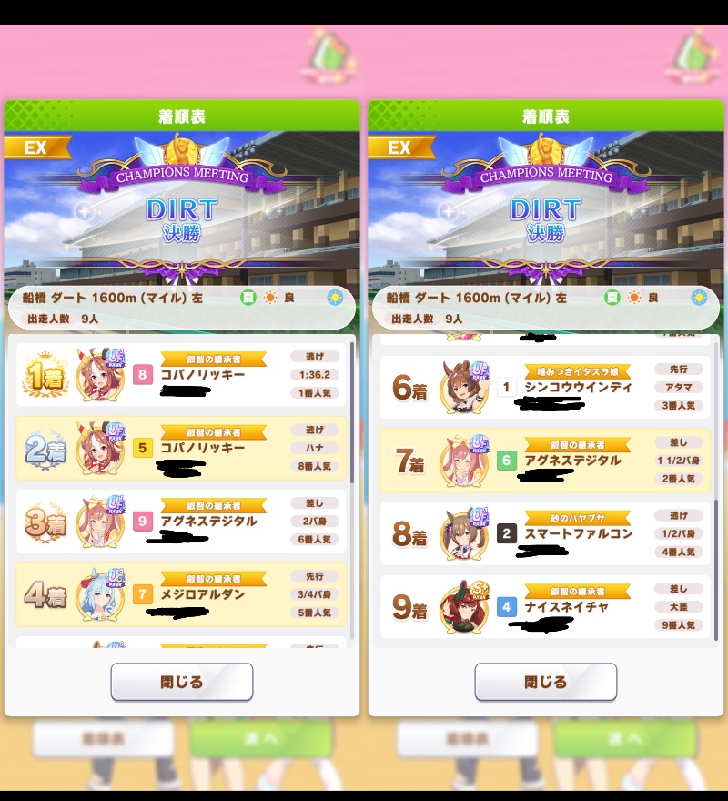 対戦相手デバフ2だったけど手抜きしててダートGだったな