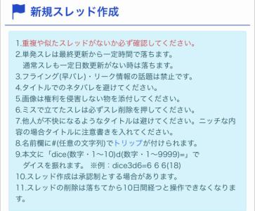 掲示板規約には目を通そうね!