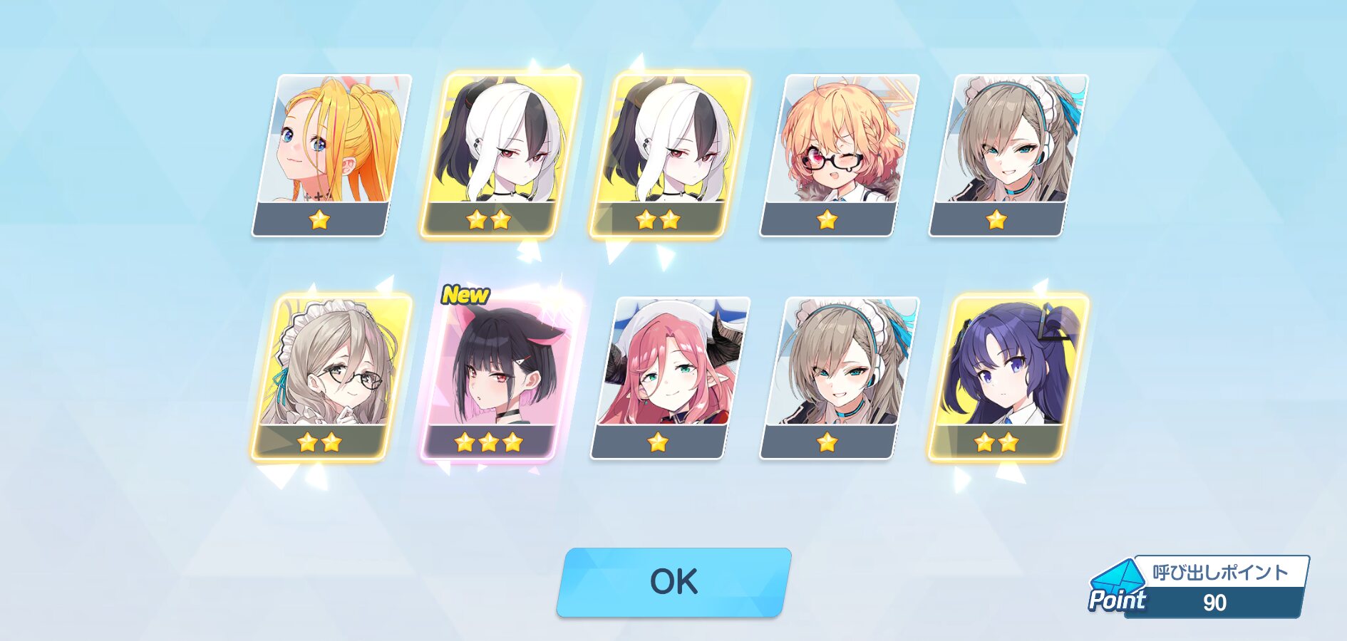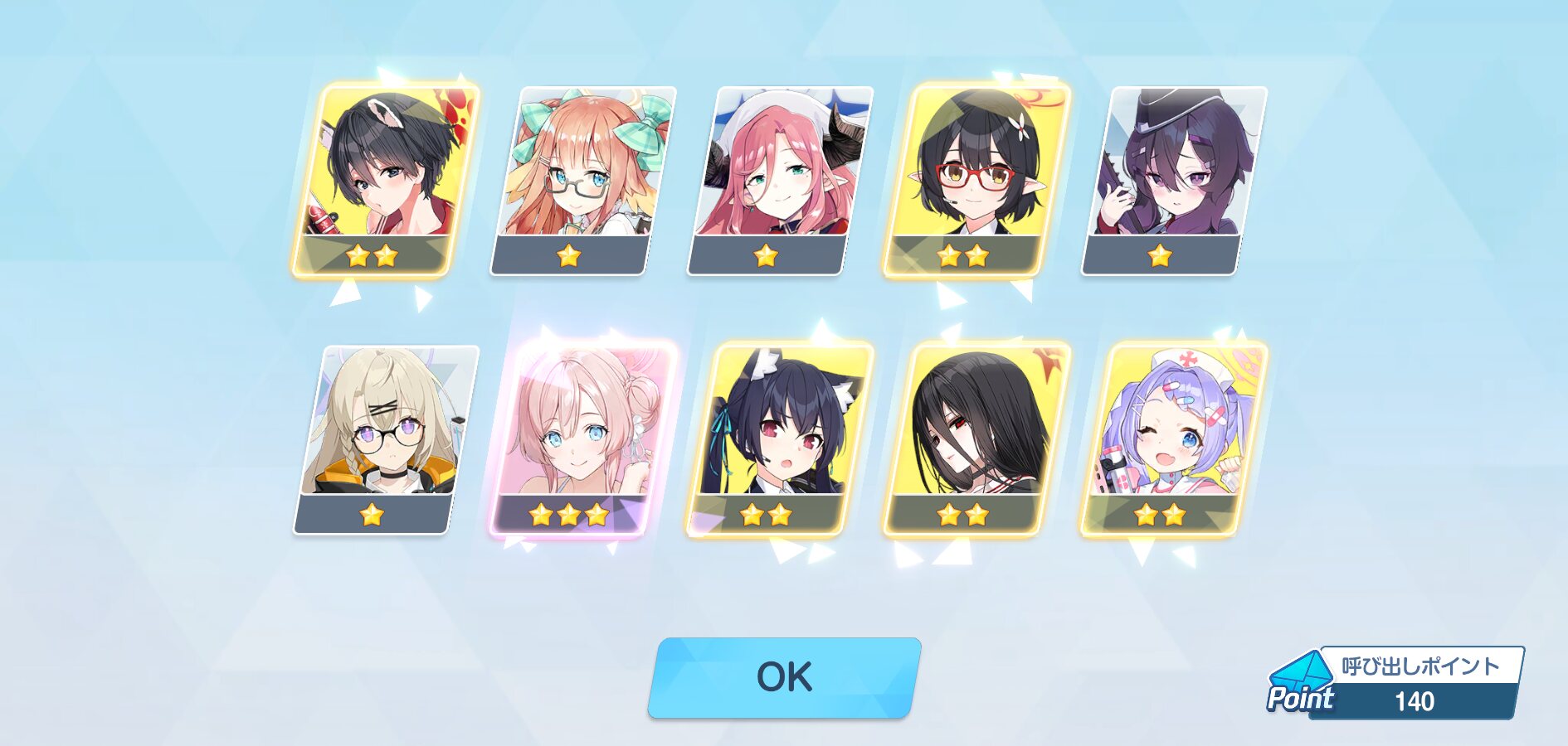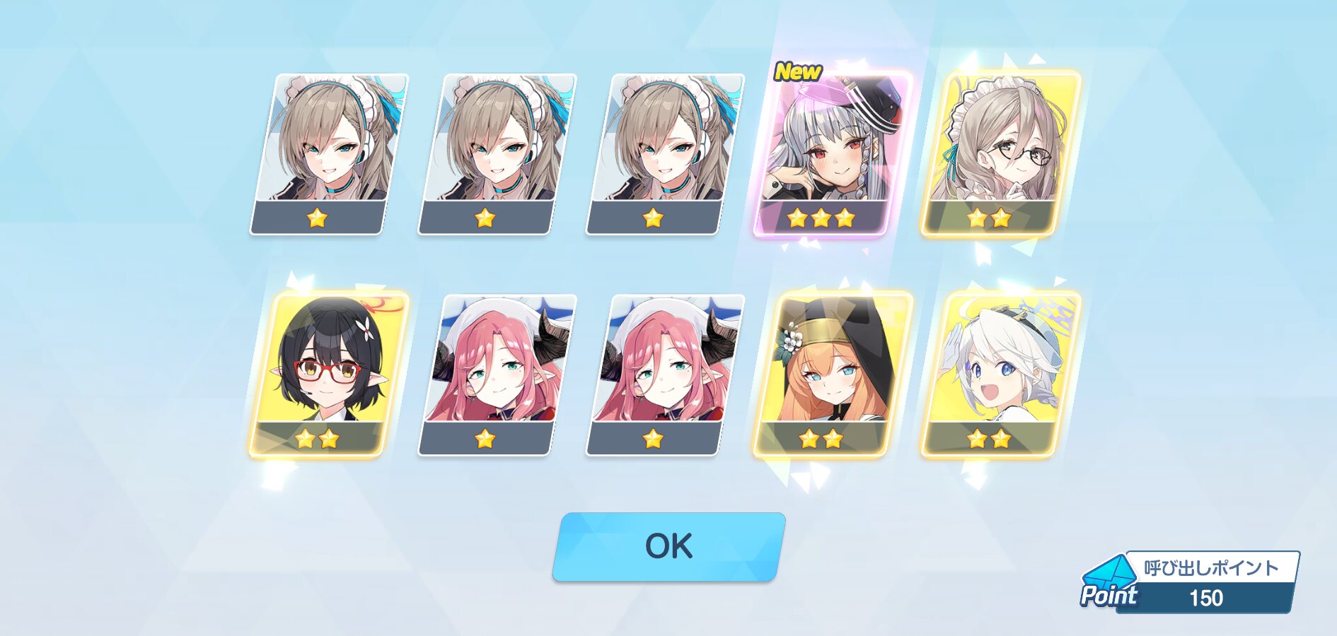 150連で星3が5枚、うちNew4、しかもうち一枚はアコ……は、普通は勝ちというんだけどまぁ…しょうがないんね……