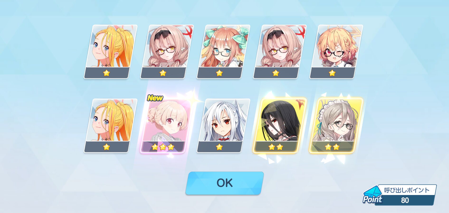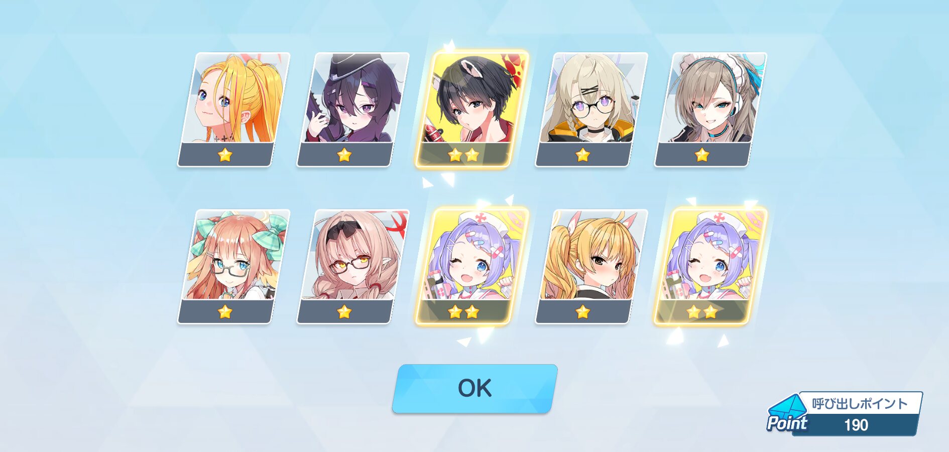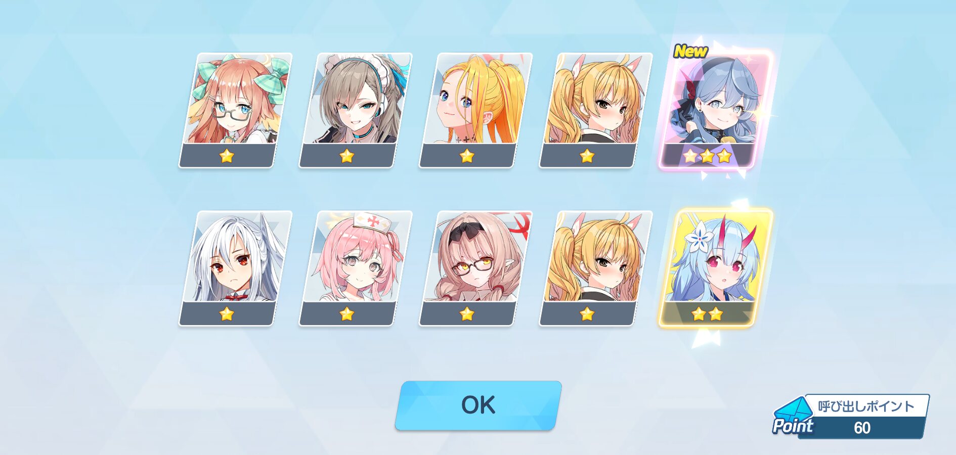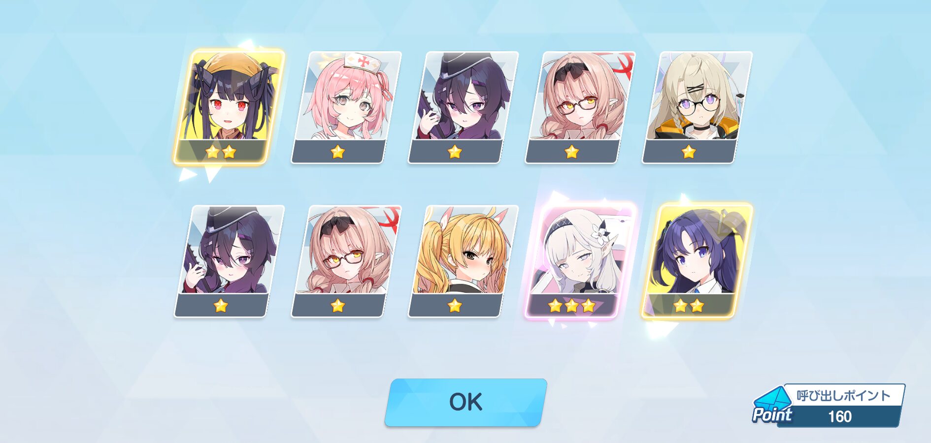 150連で星3が5枚、うちNew4、しかもうち一枚はアコ……は、普通は勝ちというんだけどまぁ…しょうがないんね……