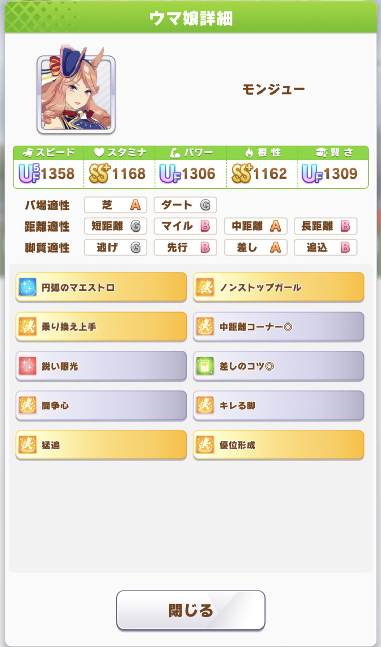 こんなステでもスキルガチガチにしないといけないと余裕で沈む=中距離育成だと…