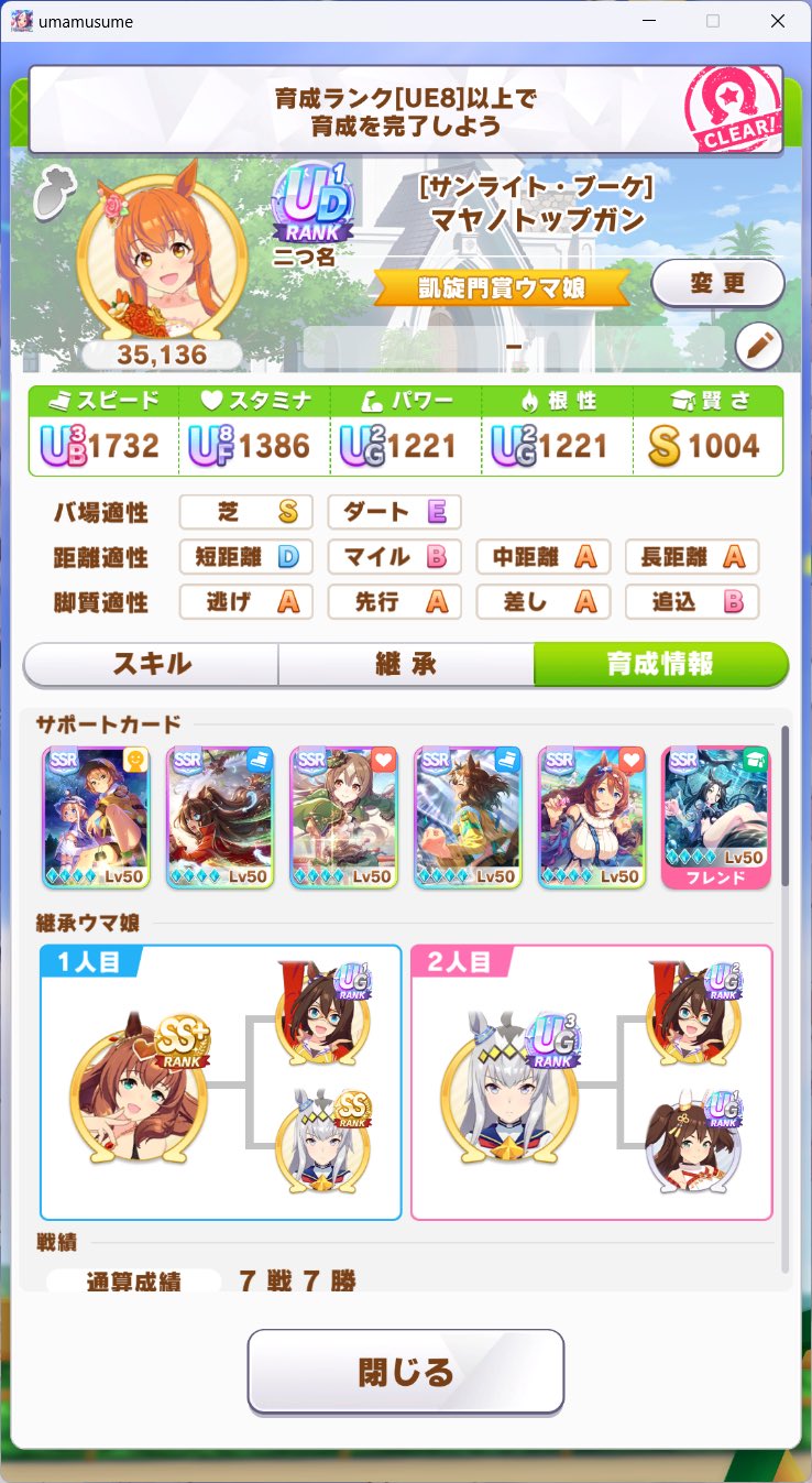 だから友情トレがいっぱいできるように得意率の高いキタちゃんとかタキオン(得意率80%持ち)が適性高いと言われてるってことでいいスかね?