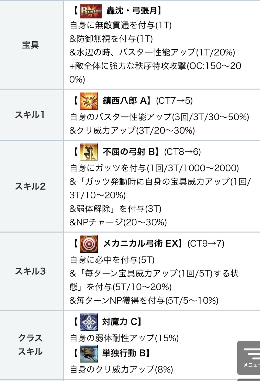 星5アーチャーの魔境にいる人だし、無敵貫通・必中付与にNP30%チャージにNP毎ターン獲得となかなかの性能だよ
