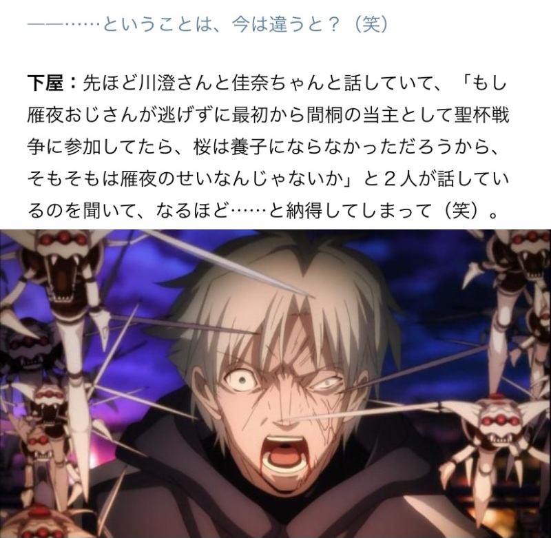 雁夜が時臣に嫉妬していることに加えて時臣が雁夜を落伍者として軽蔑しているという事や - 36二次元好きの匿名さん23/09/01(金) 18:36:46