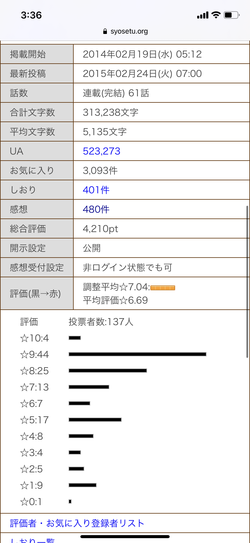 最近は人気作のお気に入り数を見て嫉妬するように