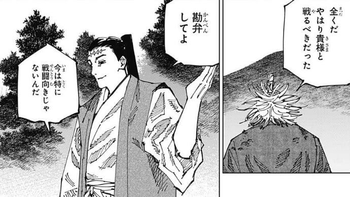 夏油ボディに🧠が入ることで母性属性が追加されちゃったな……と思ったけど、過去編で武器庫呪霊にママって言われてたわ