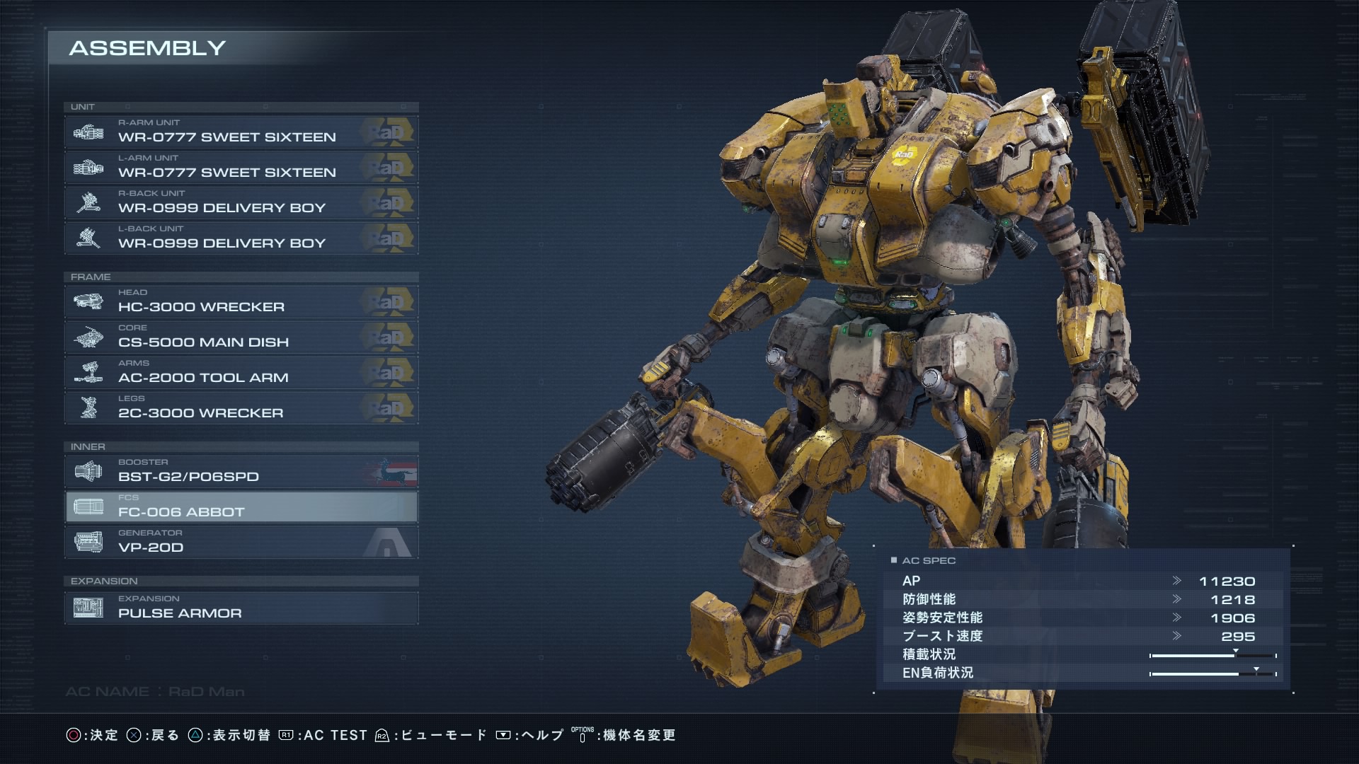 レイヴン!アセン画面からオプションボタンでAC名を変更しろ!オンには凝った見た目のAC名「LORDER4」が量産されている…せっかくだから名前を変更しても構わないはずだ!