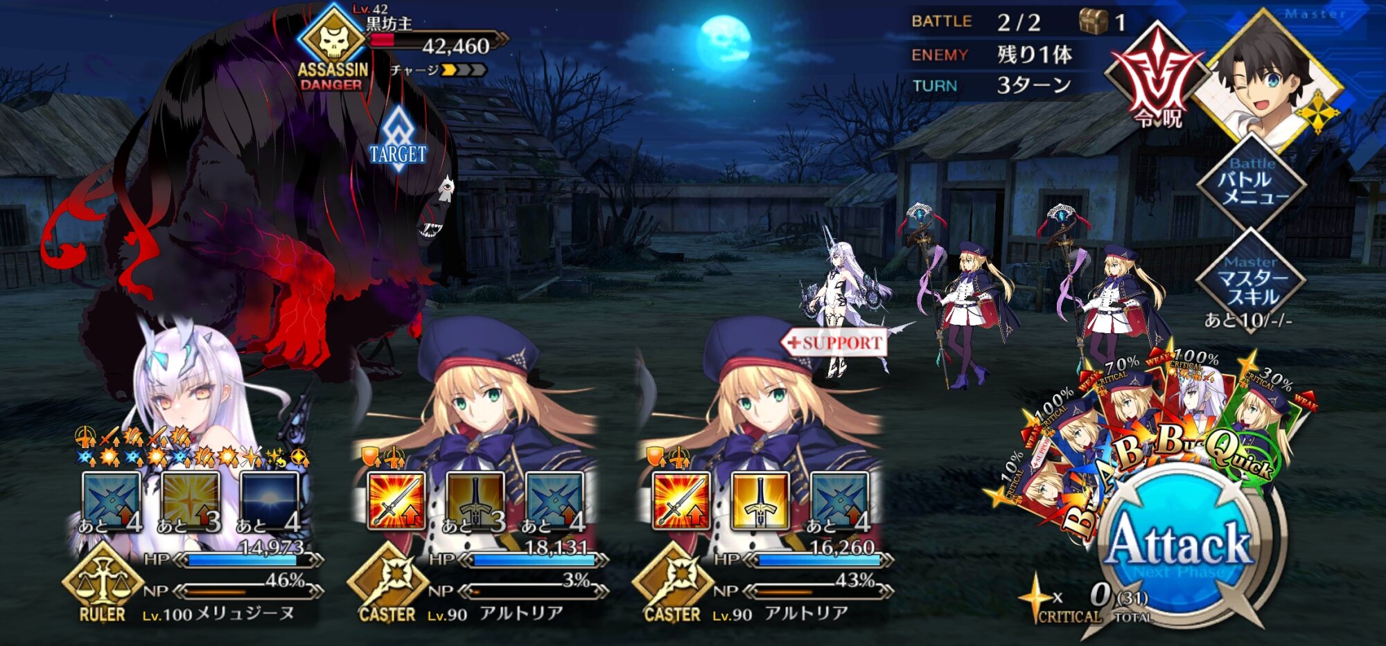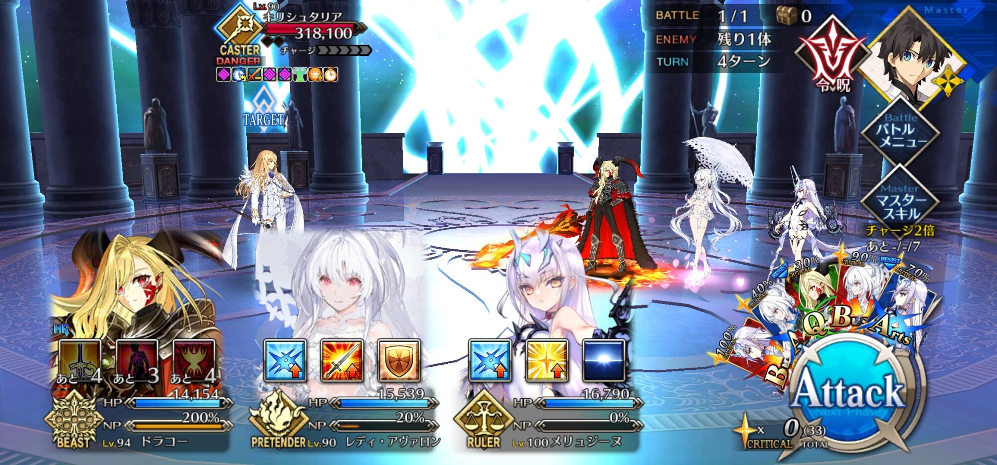 無敵貫通ないけど強化解除してくる宝具にはケイネス先生礼装に付いてる無敵で耐えたり、死霊魔術ガッツで耐えてたかな