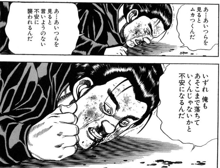 熊田の事をいくらポン中の犯罪者だからって廃人にした奴を持ち上げる気にはならねえって言った次の章の悪徳病院編で相手をボコボコにしてからモニター叩きつけて追い討ちするのはどうかと思ってんだ