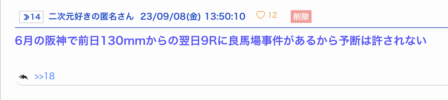 まあ走る馬たちにとっては大概は良馬場のほうがいいよね… - 145二次元好きの匿名さん23/09/10(日) 11:35:21