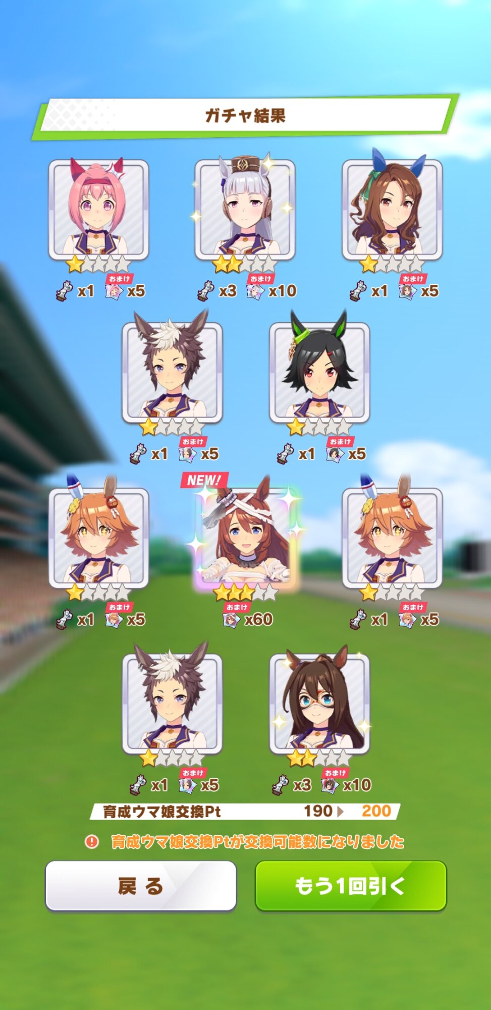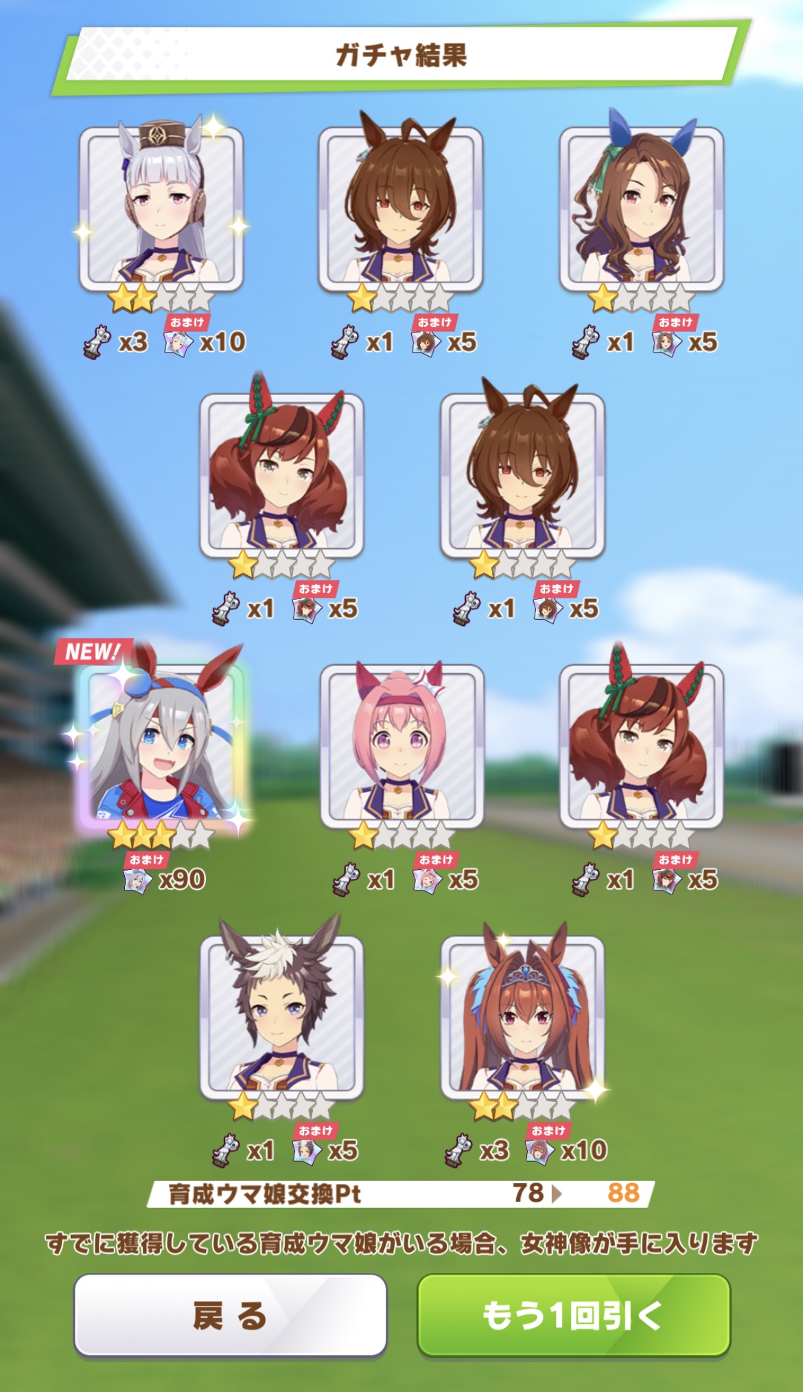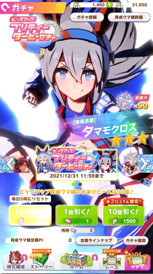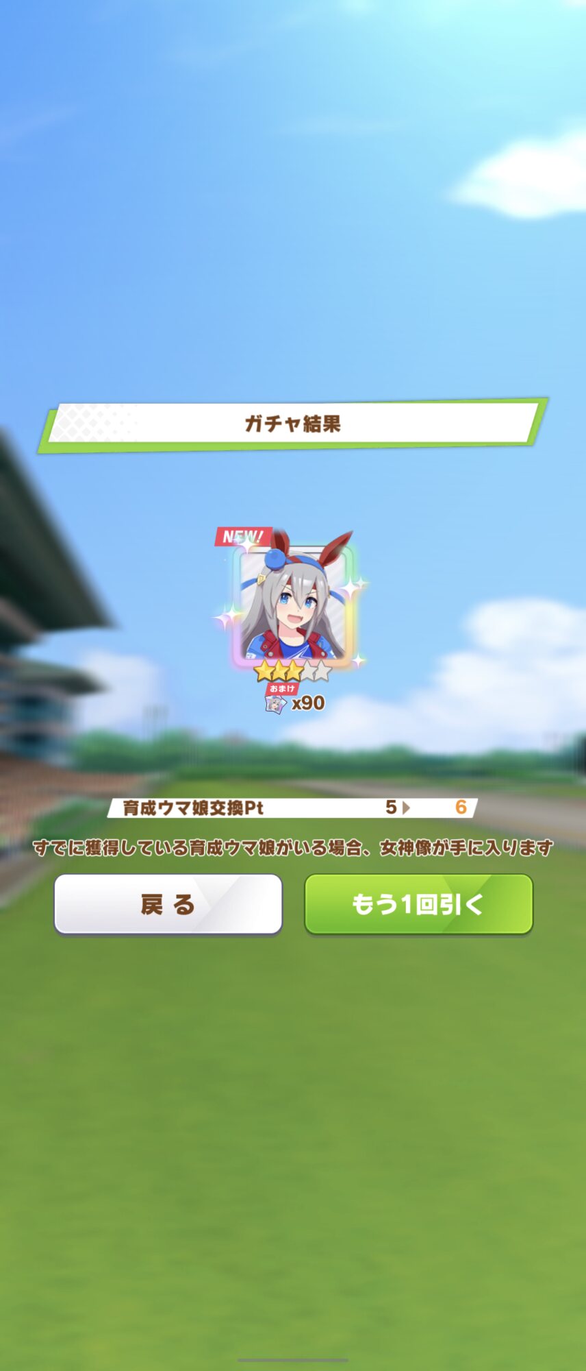 でな?次にドトウ天井した時は未所持は通常マルゼンとオペラオーが来て所持済みで確かモンクエルとヒーラーグラス来たんや