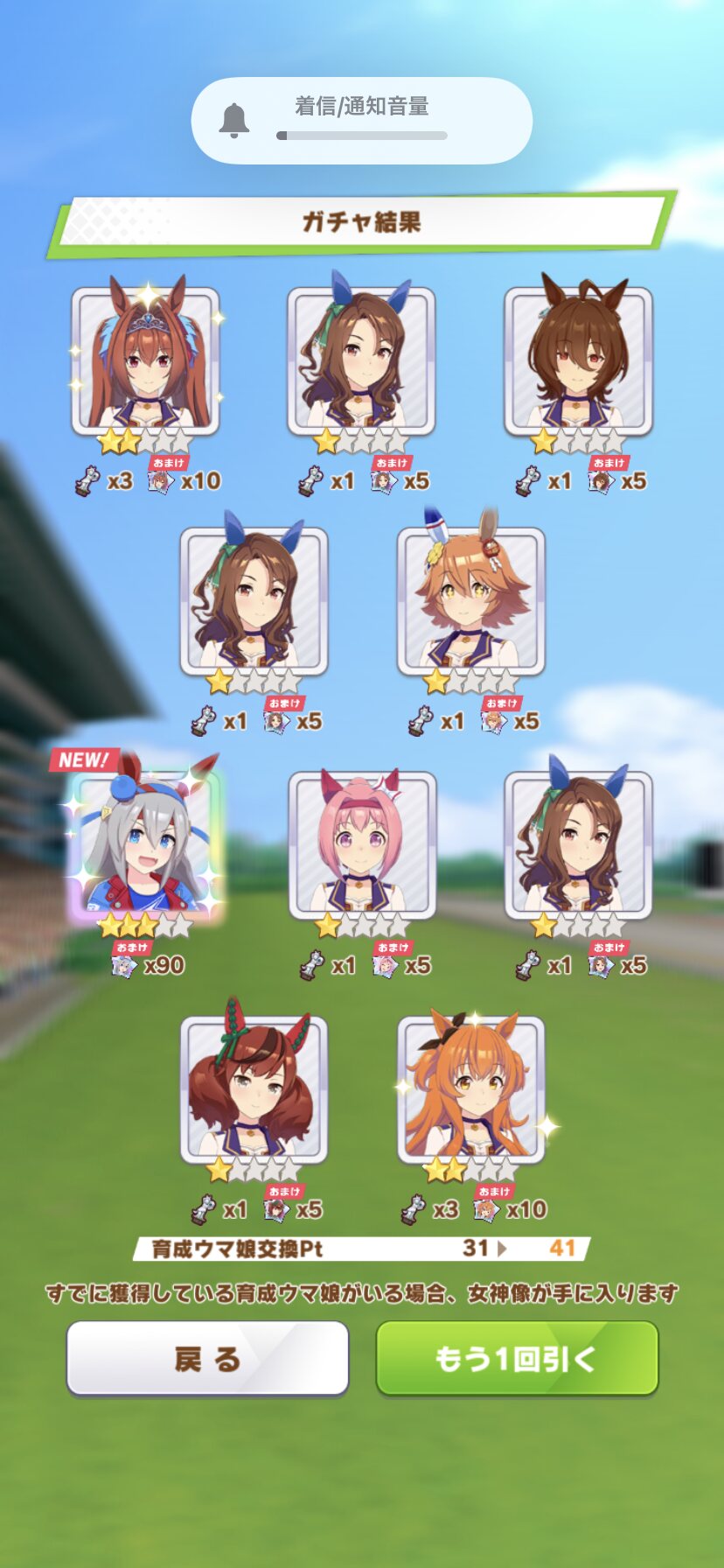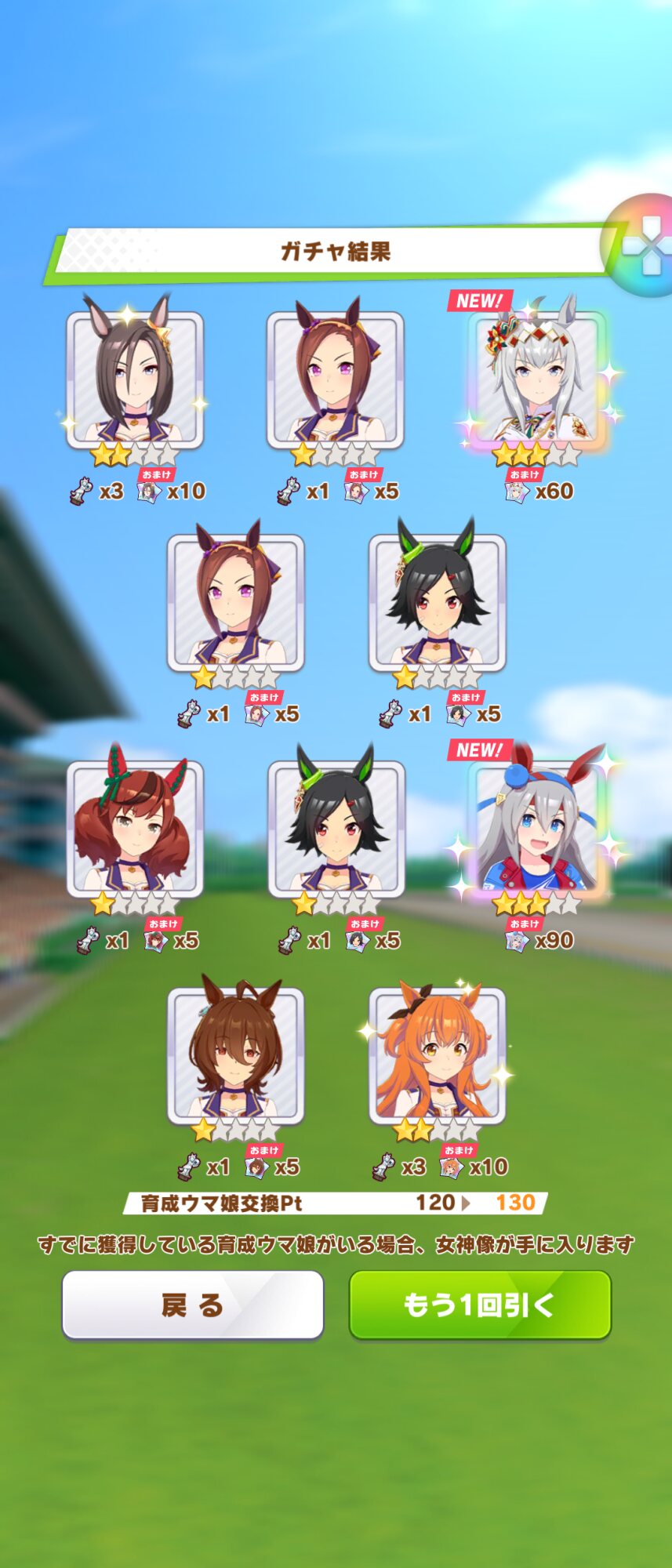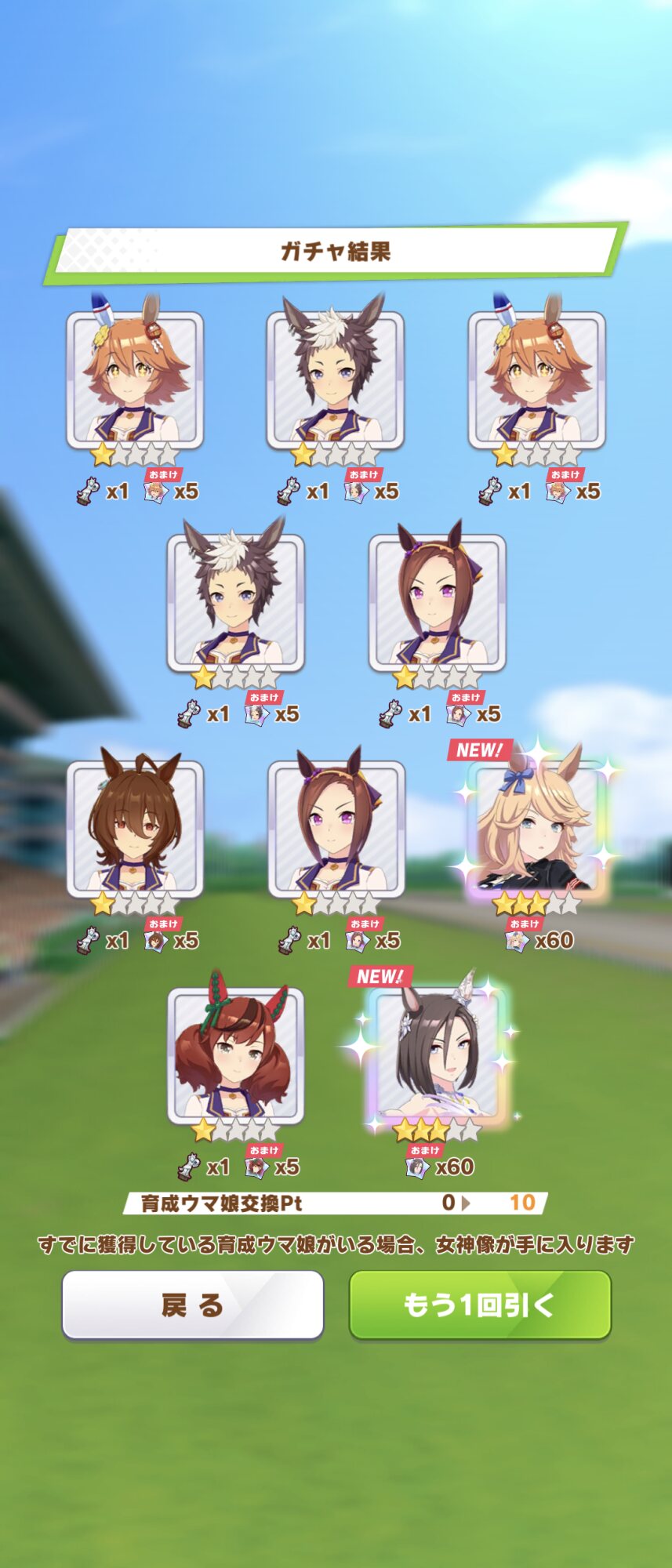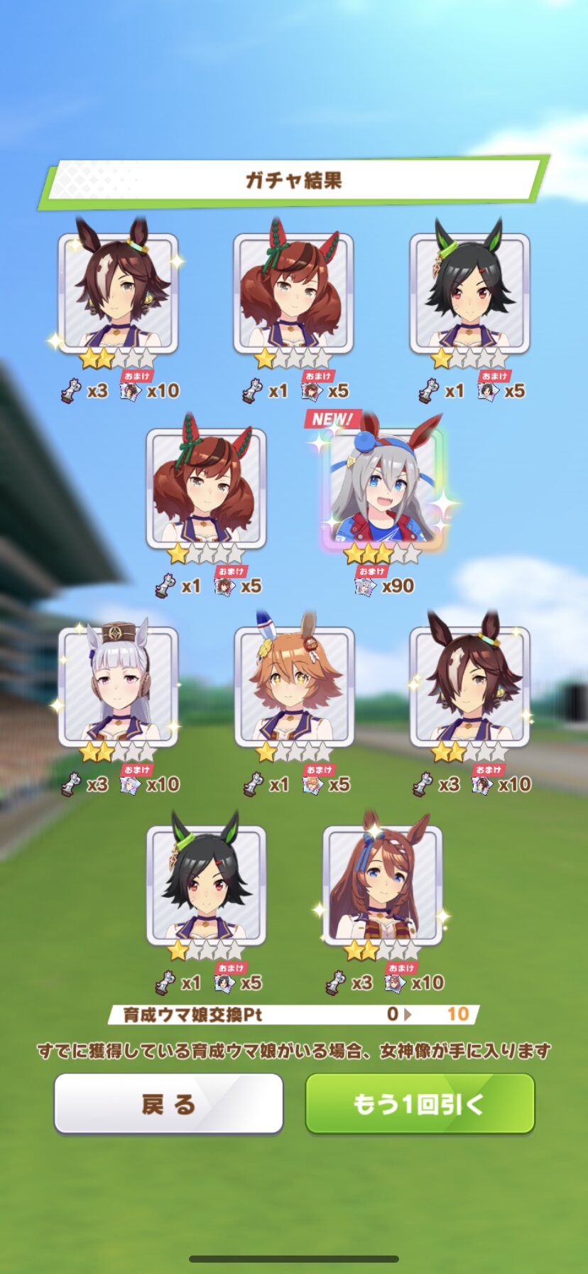 でな?次にドトウ天井した時は未所持は通常マルゼンとオペラオーが来て所持済みで確かモンクエルとヒーラーグラス来たんや
