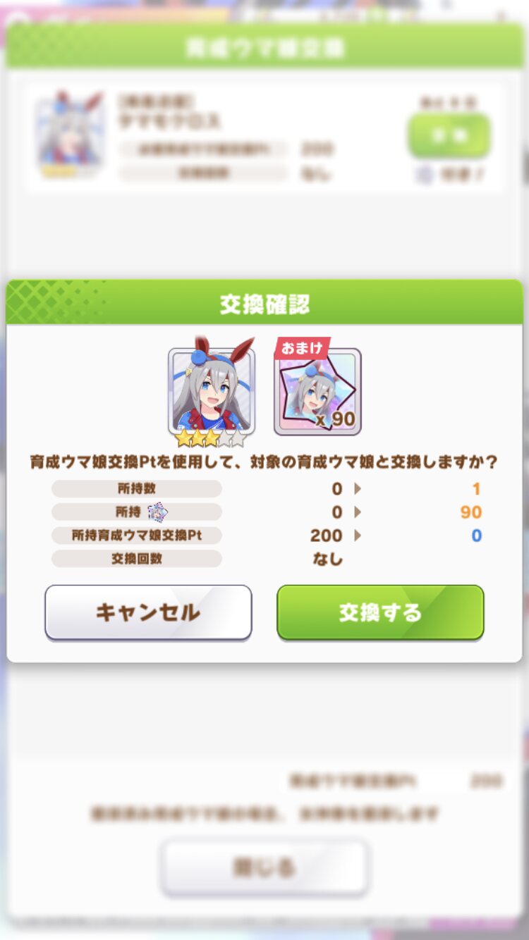 でな?次にカフェ天井した時には未所持は水スぺ、所持済は会長フラッシュ、ヒーラーグラス、ブルボンが来たんや