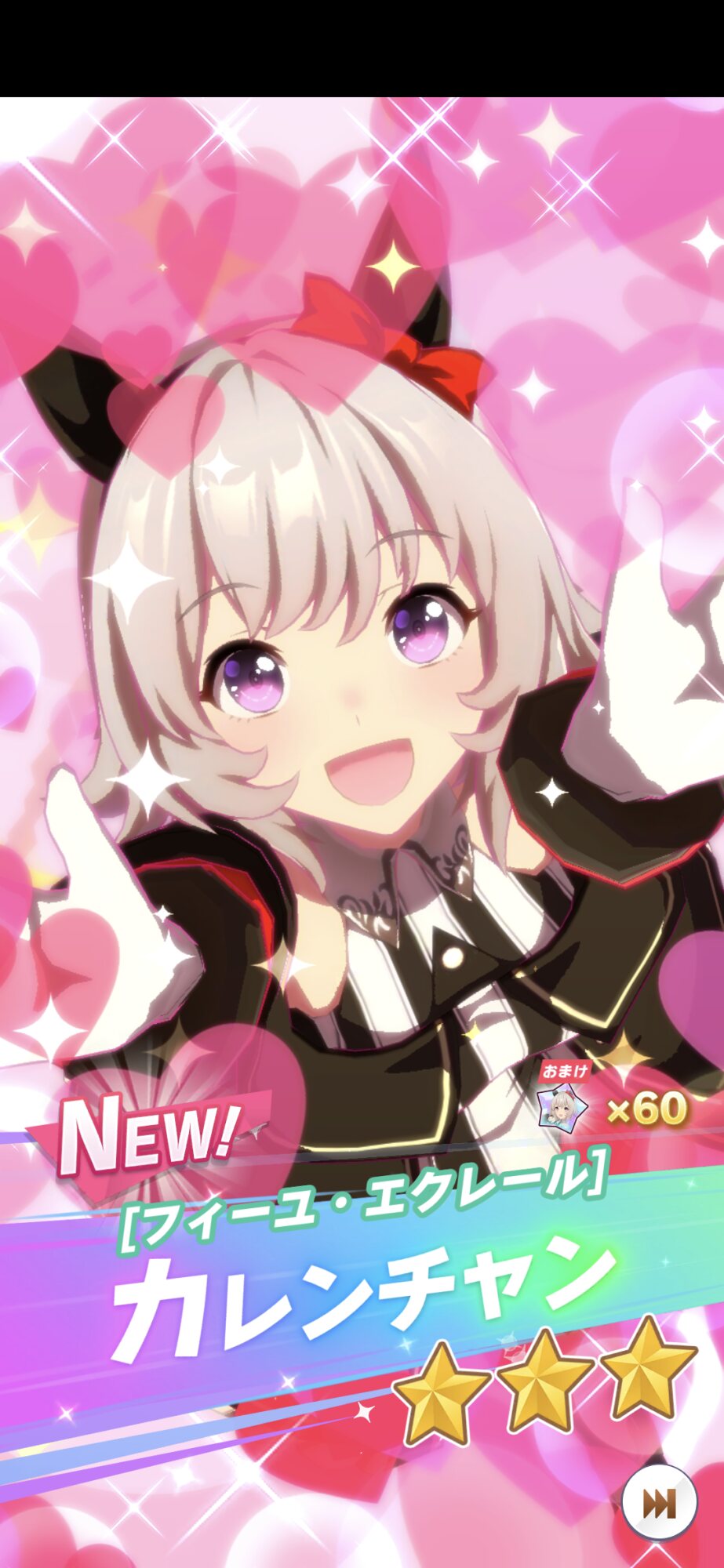 でな?次は天井はしとらんのやけど、ドーベルは160連で引いたんや。未所持はカワカミプリンセス2人引いたで