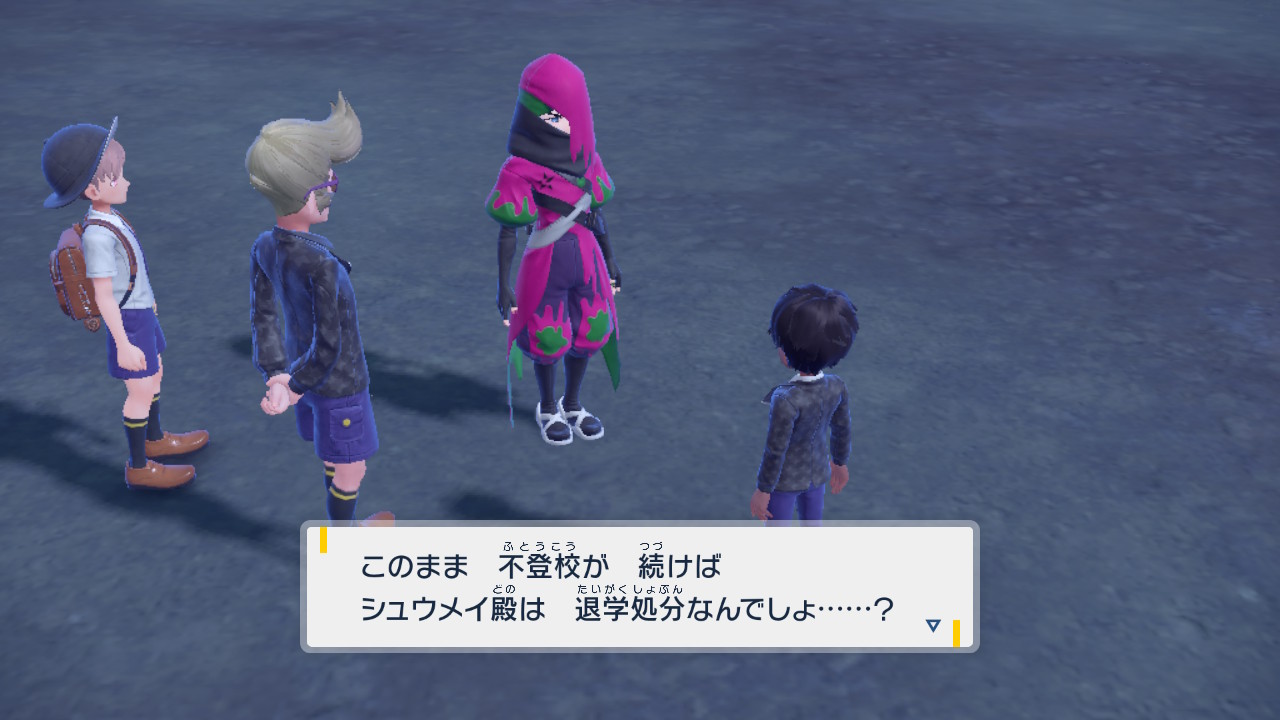 ネルケが言っていた解散要望の期限が近いという話。返答がなければ退学になってしまうと聞いたね。スター団がなくなれば、マジボスが倒されさえすればスター団員の退学は免れるということになる。筋が通る