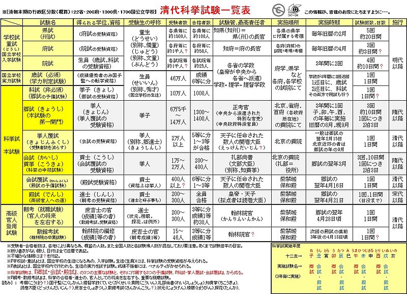 試験科目は経義(けいぎ・儒教経典の解釈)・詩賦(しふ・詩を作る)・論策(ろんさく・論文)の3科目となりました。論策では政策立案能力が試されながらも、論文の中には古典(経書、史書)からの引用文を披露することも求められ、かなりの難易度だったことがうかがえます。