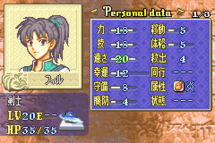 クラスチェンジできないからHPと幸運を除いてステータス上限20の盗賊組に次ぐ成長率なんだ愛と時間をこめて育てるんだ