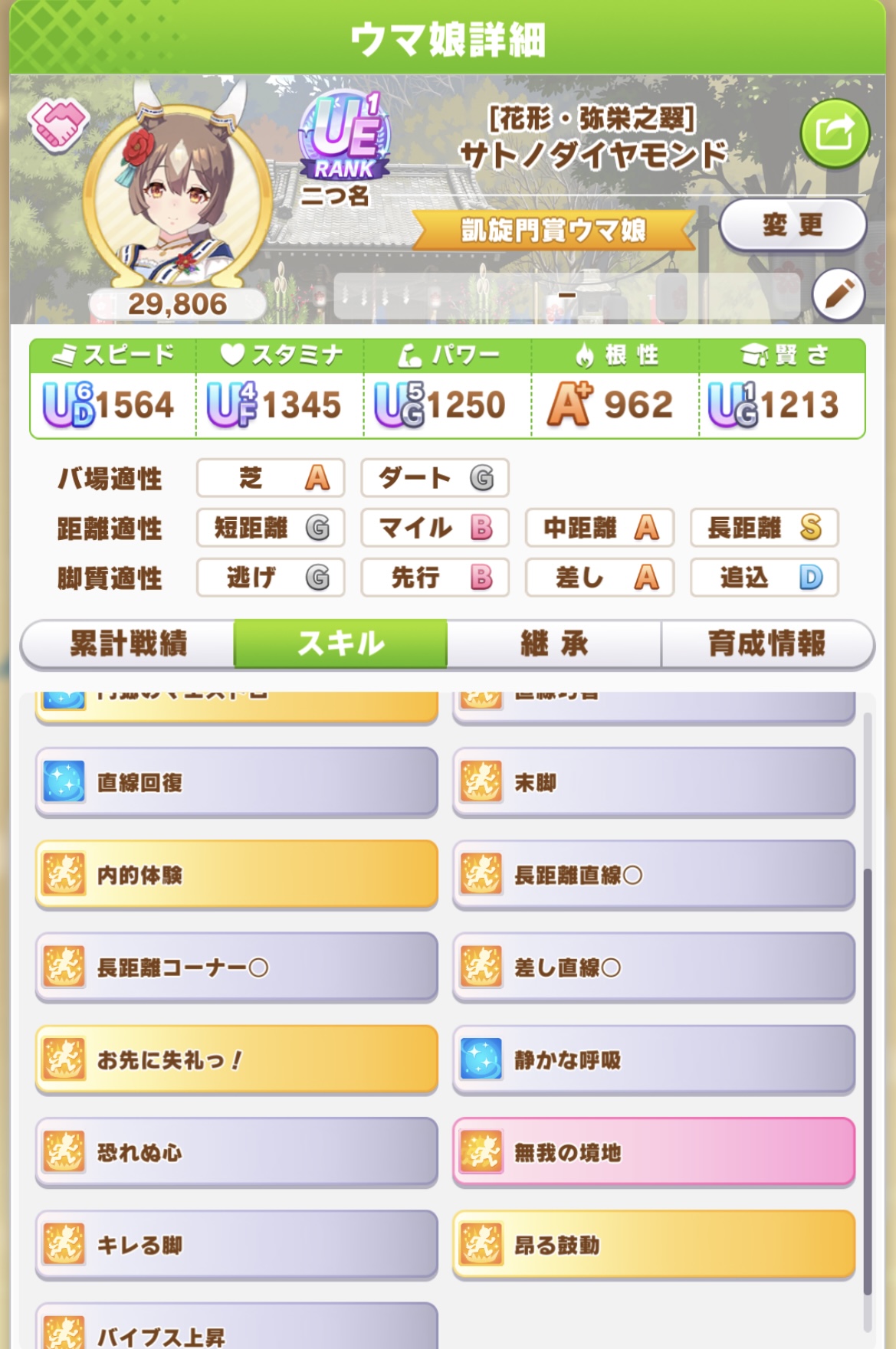 さっき練習で重馬場不調で走らせたけど、スタ1200なら金回復1白3でも安定して走れ切れたから回復に固執する必要は無いよ思うよ