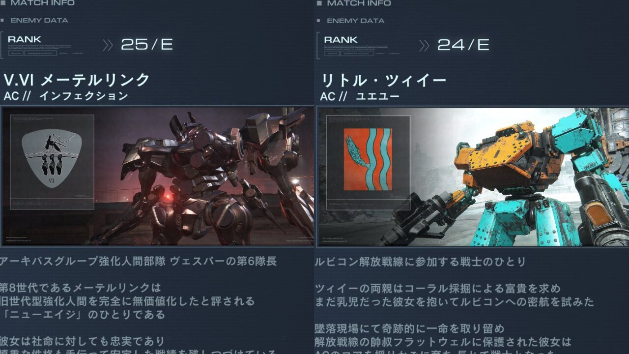 まあAC同士がタイマンやるシチュエーションが基本は少ないだろうし、ランキングの名目は戦闘能力なんだろうけど実際は戦闘実績から得たトータルでの指標で算出してるって感じなのかなと