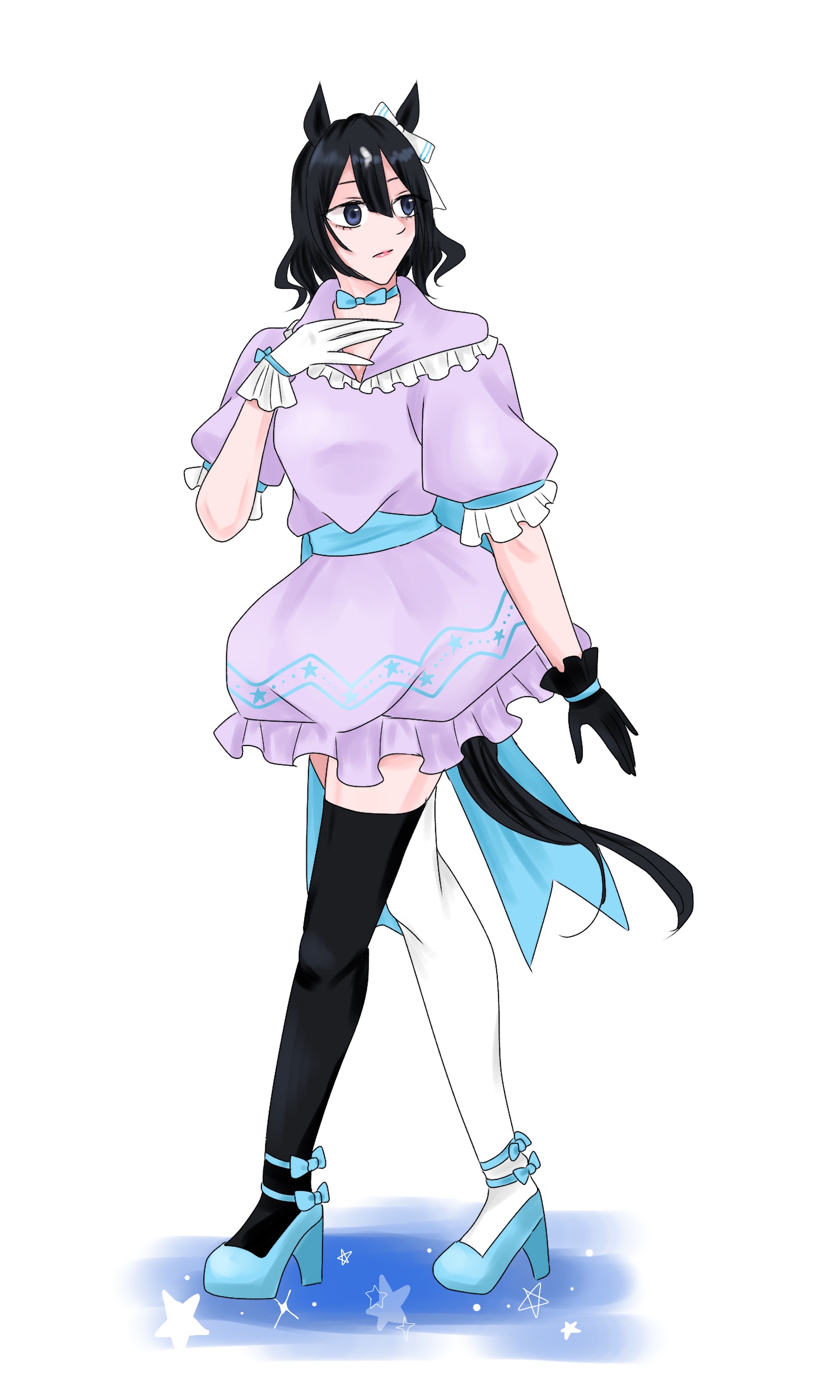 スセシ→海関係の名前なので人魚みたいな水着みたいな………髪型はドリジャとお揃いのハーフツイン